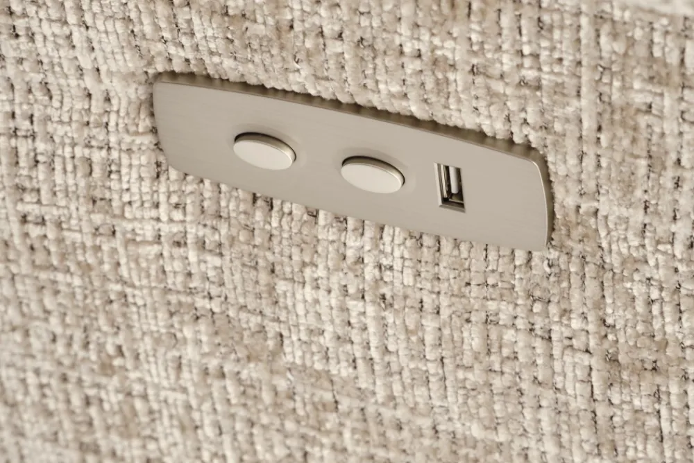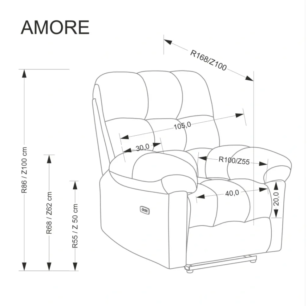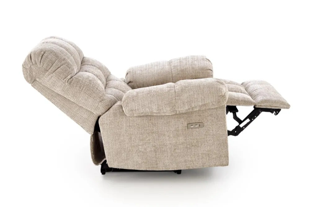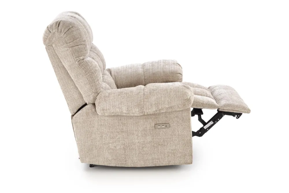 wymiary: 105/168-100/86-100/55-50 cm, fotel z funkcją elektrycznego rozkładania, materiał: tkanina, kolor: beżowy