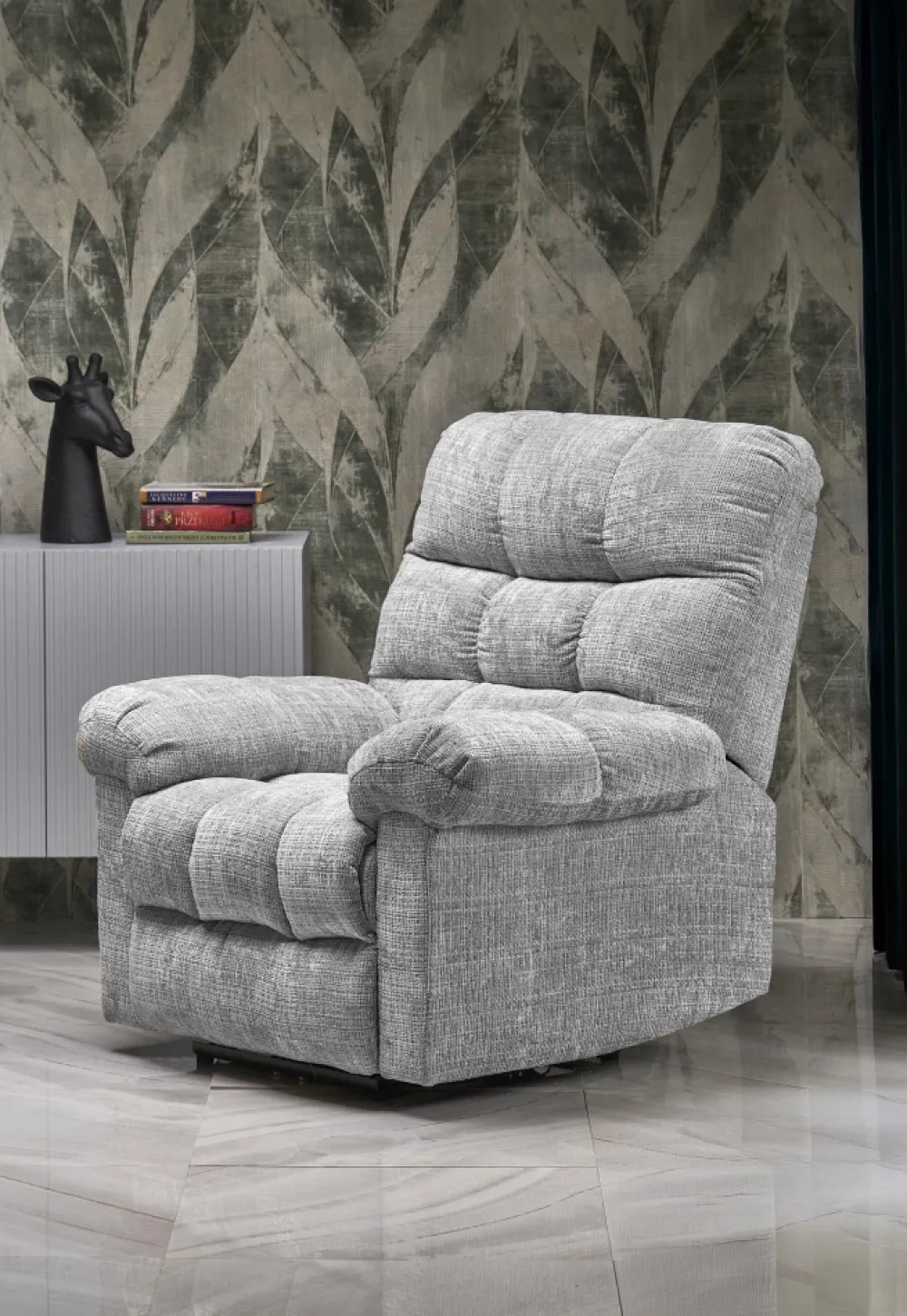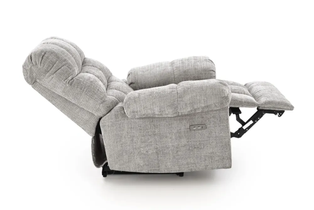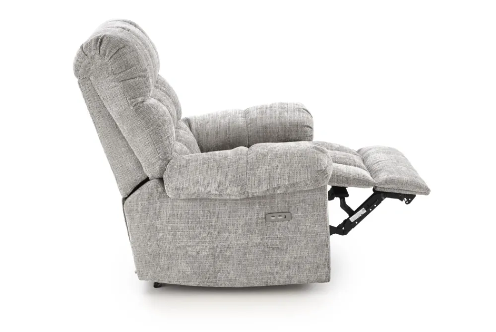 wymiary: 105/168-100/86-100/55-50 cm, fotel z funkcją elektrycznego rozkładania, materiał: tkanina, kolor: popielaty