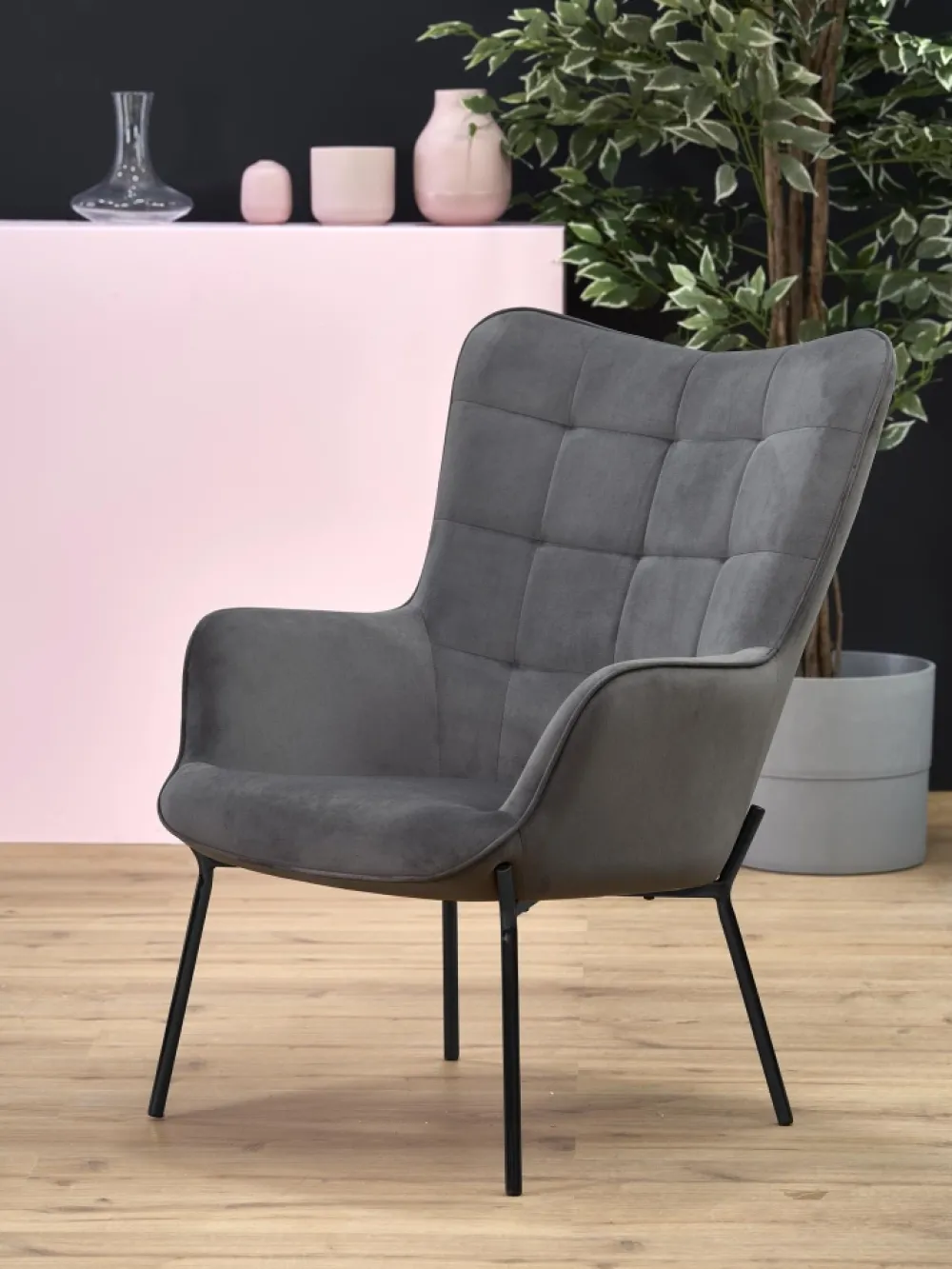 Halmar Fotele*CASTEL fotel wypoczynkowy czarny / jasny popiel1 sztuka