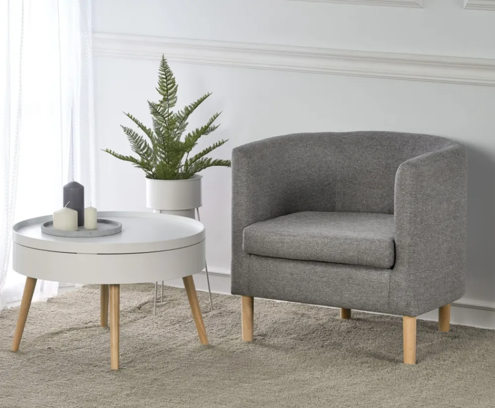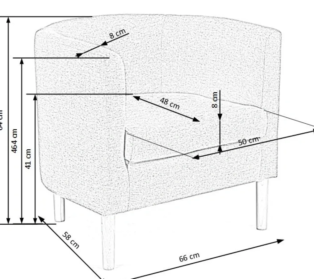 wymiary: 66/58/64/41 cm, materiał: tkanina / drewno lite, kolor: tapicerka – popielaty (MALMO NEW 90), nogi – naturalny