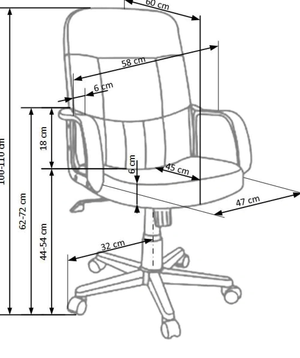 mechanizm TILT, wymiary: 58/60/100÷110 cm, materiał: eco skóra, kolor: czarny