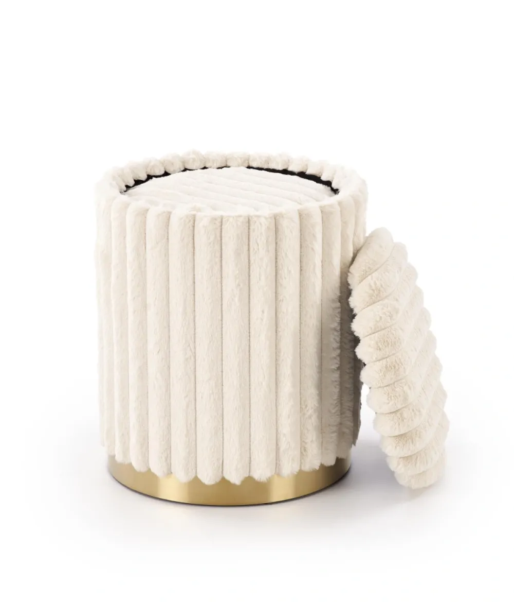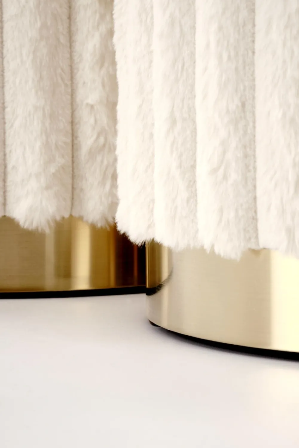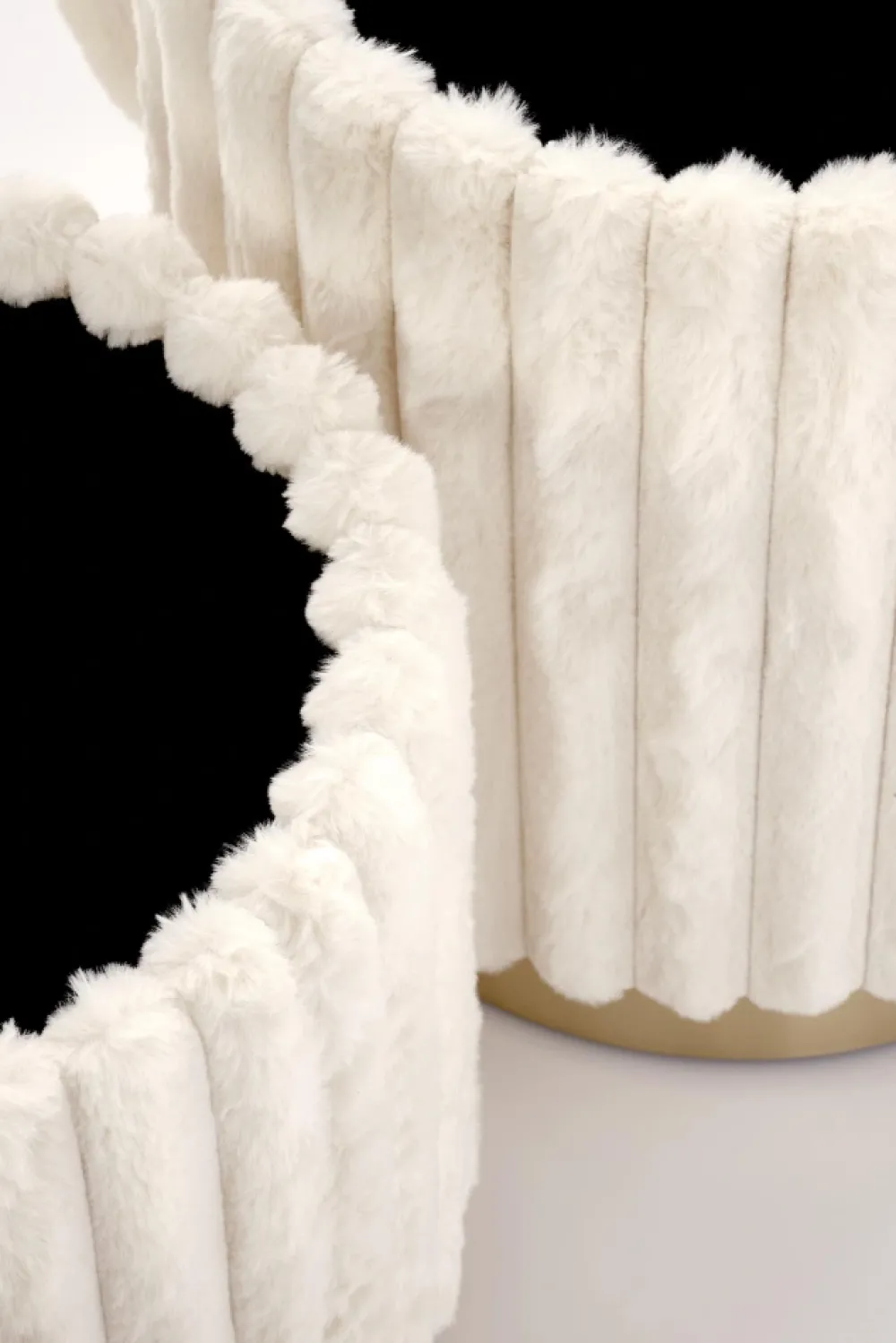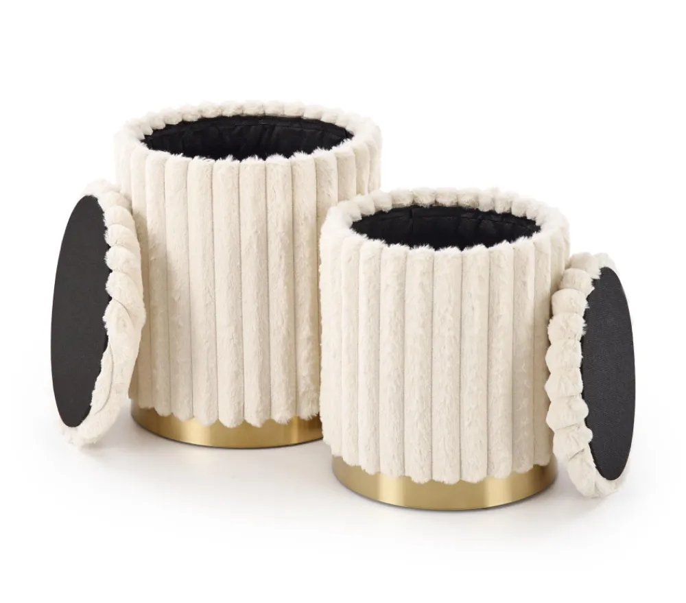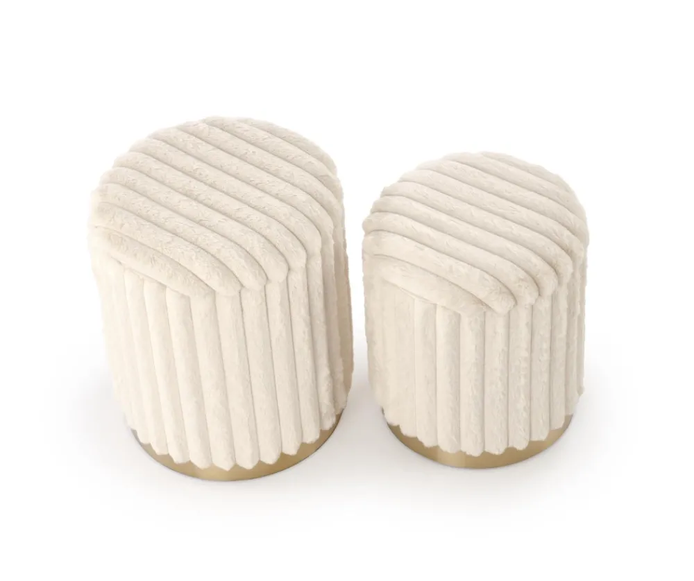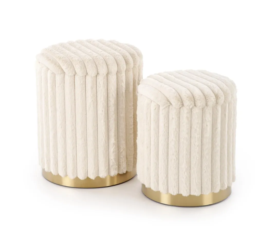 wymiary: fi 36/44 oraz fi 31/38 cm, zestaw 2 puf z funkcją pojemnika, materiał: tkanina / stal chromowana, kolory: kremowy / złoty