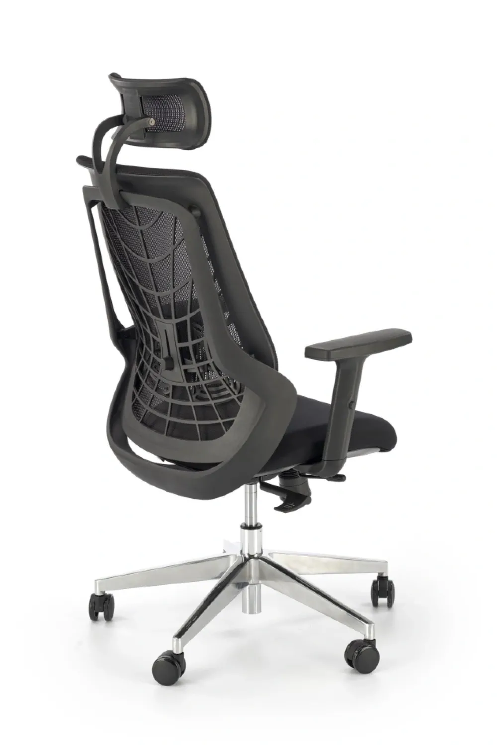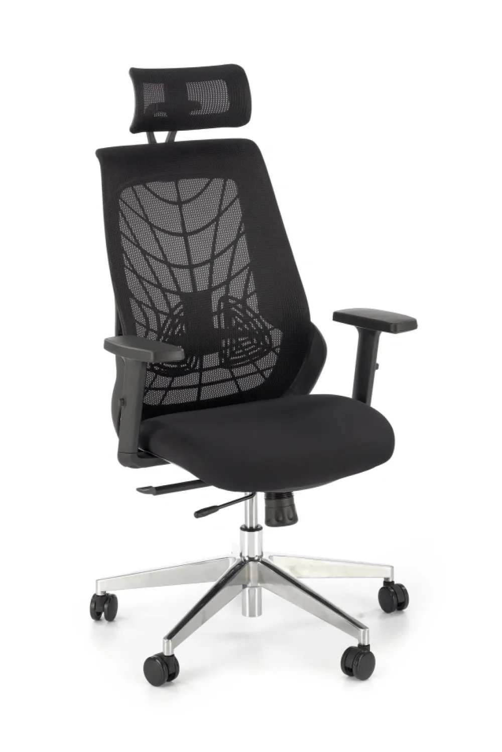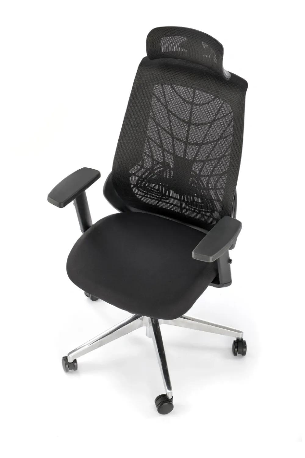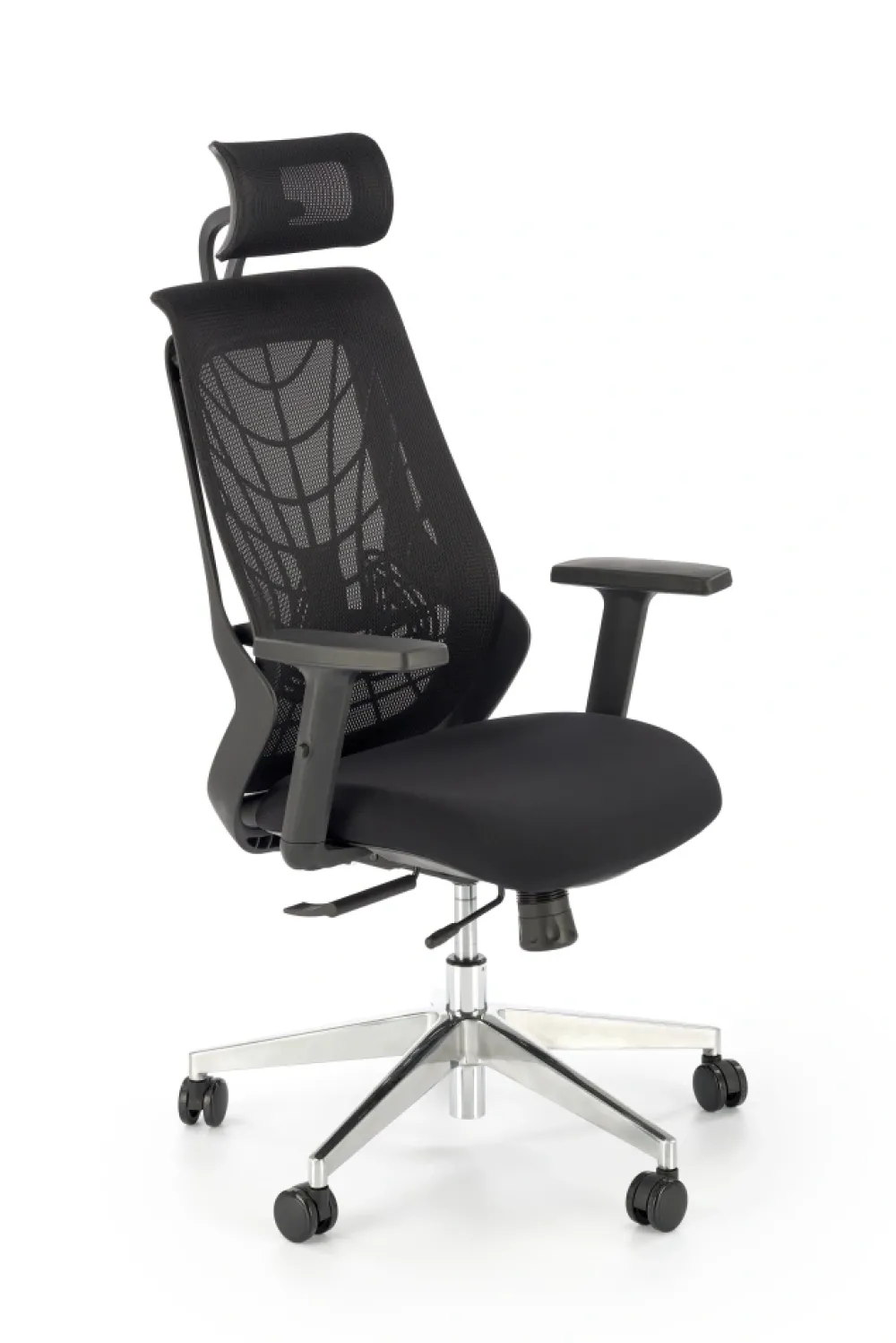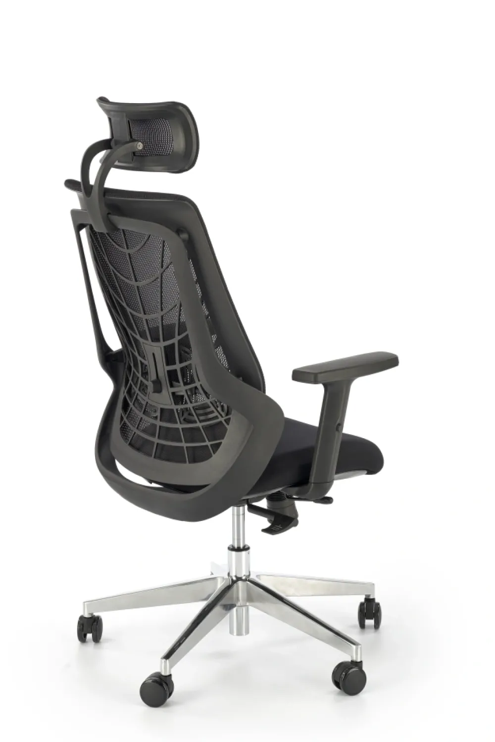 wymiary: 66/67/115-125/38-48 cm, mechanizm synchroniczny / regulowany zagłówek / regulowane podłokietniki / regulowany punkt podparcia pleców / wysuwane siedzisko / aluminiowa podstawa, tkanina membranowa / siatka, kolor: czarny