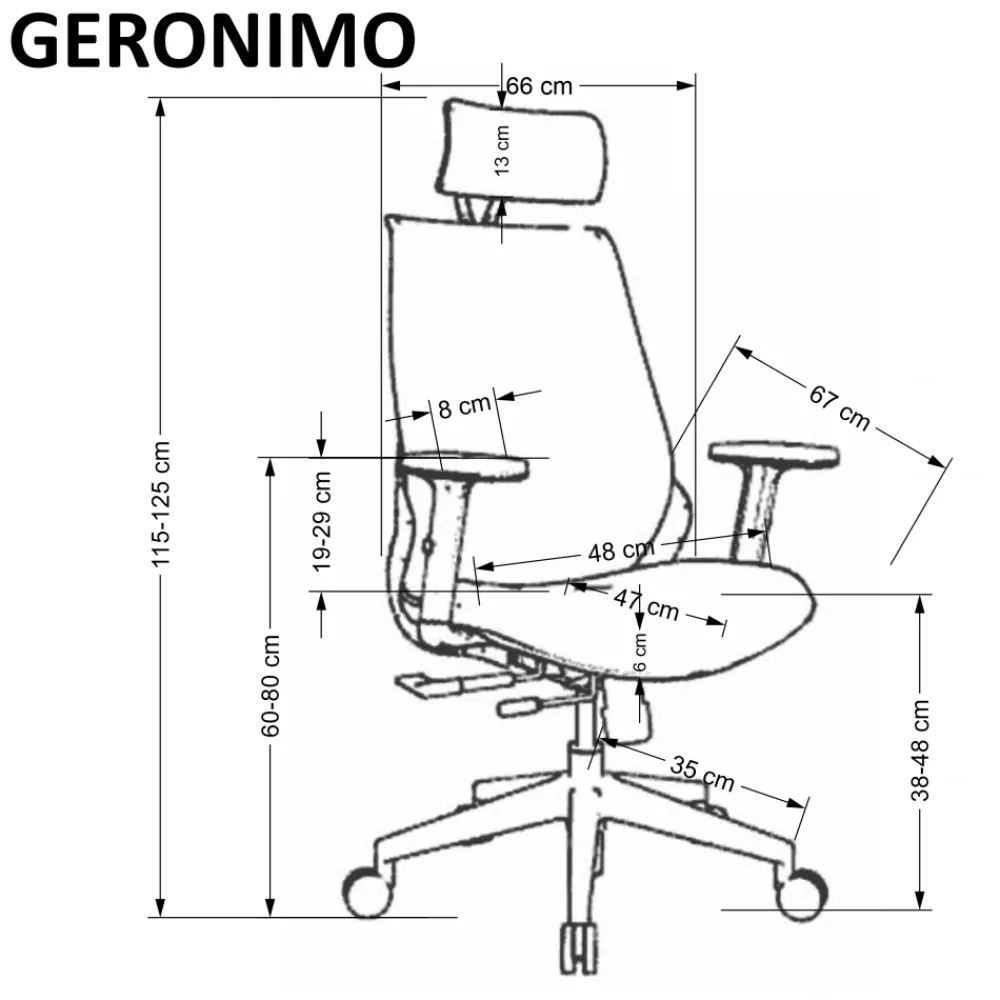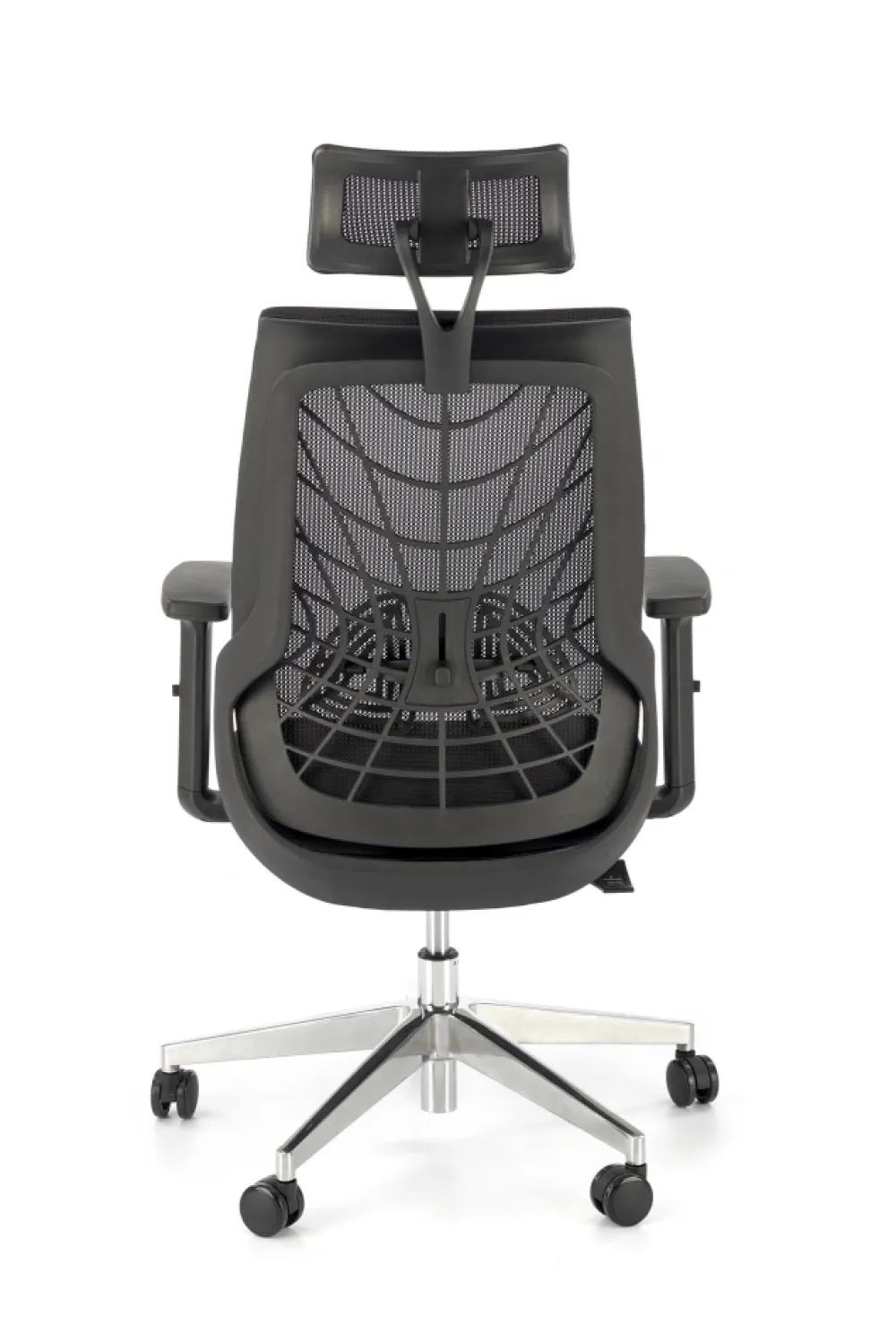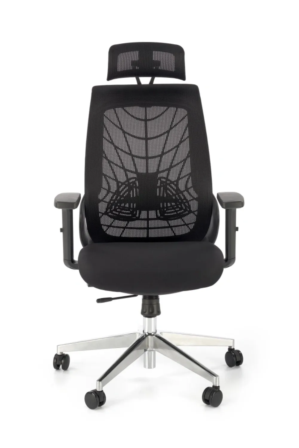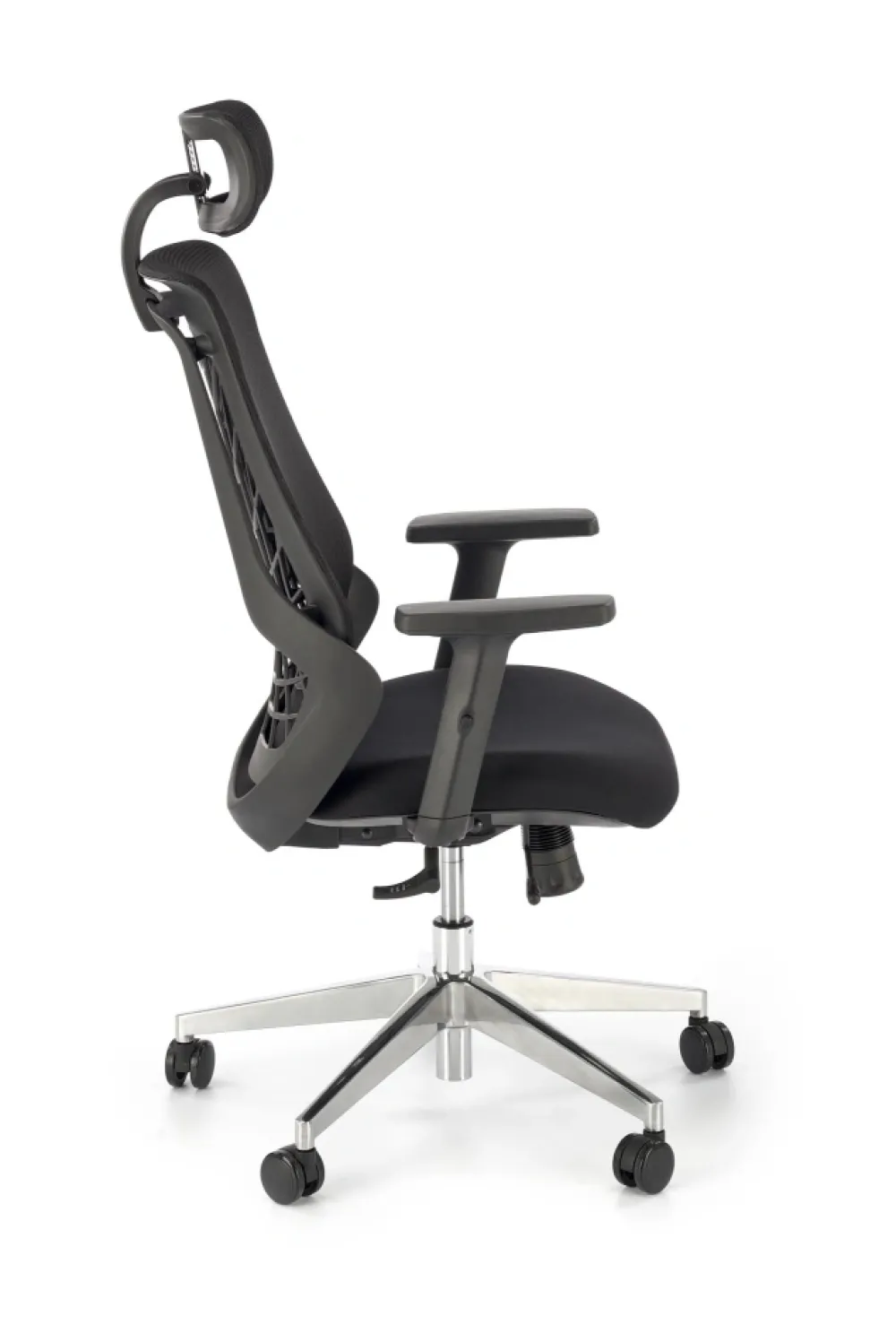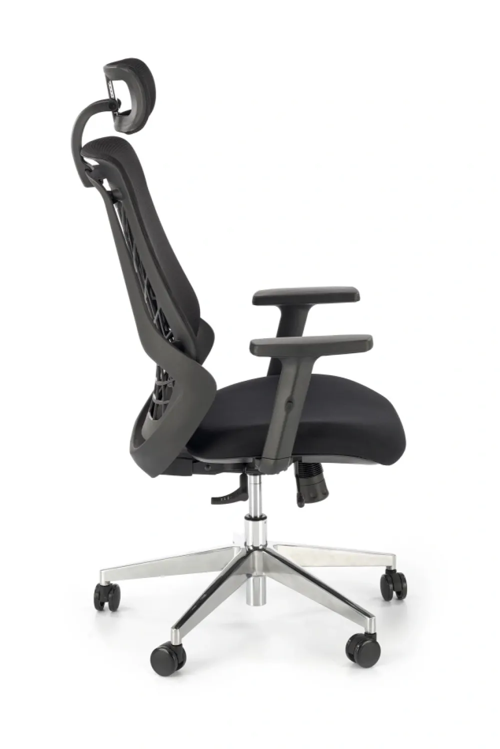 wymiary: 66/67/115-125/38-48 cm, mechanizm synchroniczny / regulowany zagłówek / regulowane podłokietniki / regulowany punkt podparcia pleców / wysuwane siedzisko / aluminiowa podstawa, tkanina membranowa / siatka, kolor: czarny