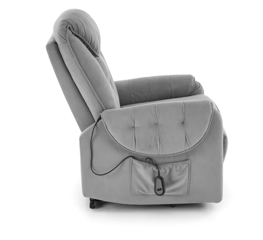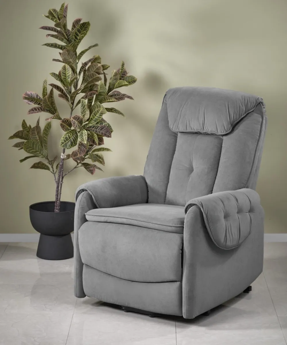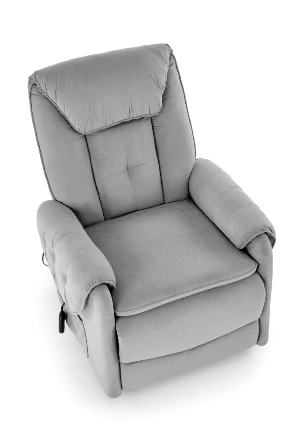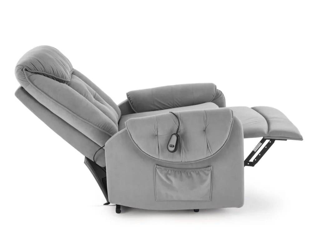 wymiary: 80/97-158/105-90/52-53 cm, fotel z funkcją elektrycznego rozkładania / funkcja pionizacji, materiał: tkanina mat velvet – MAVEL, kolor: popielaty #14