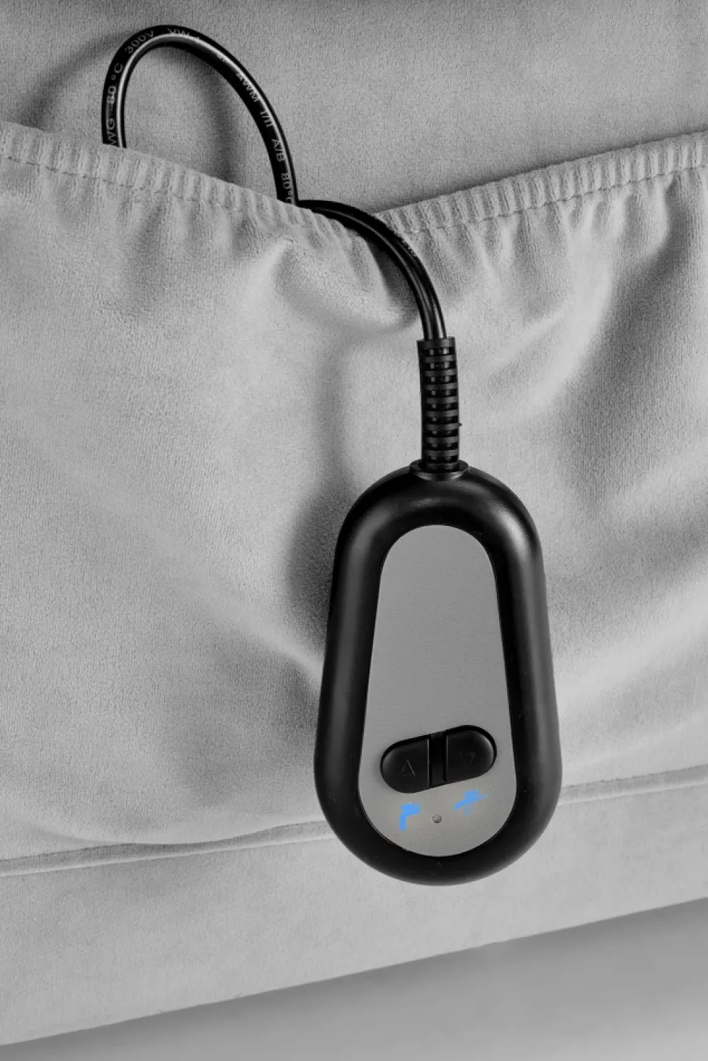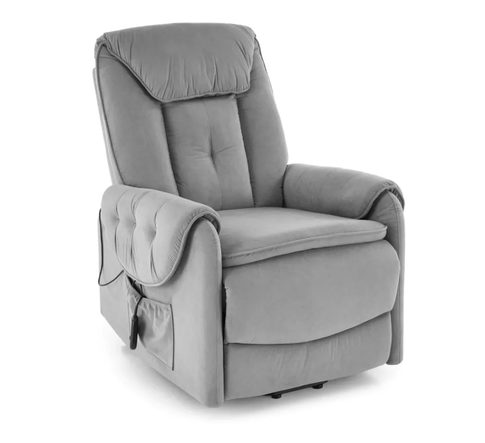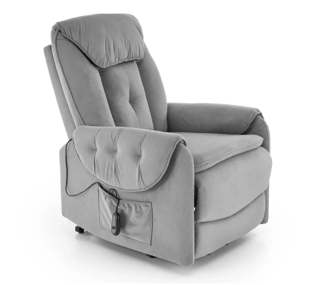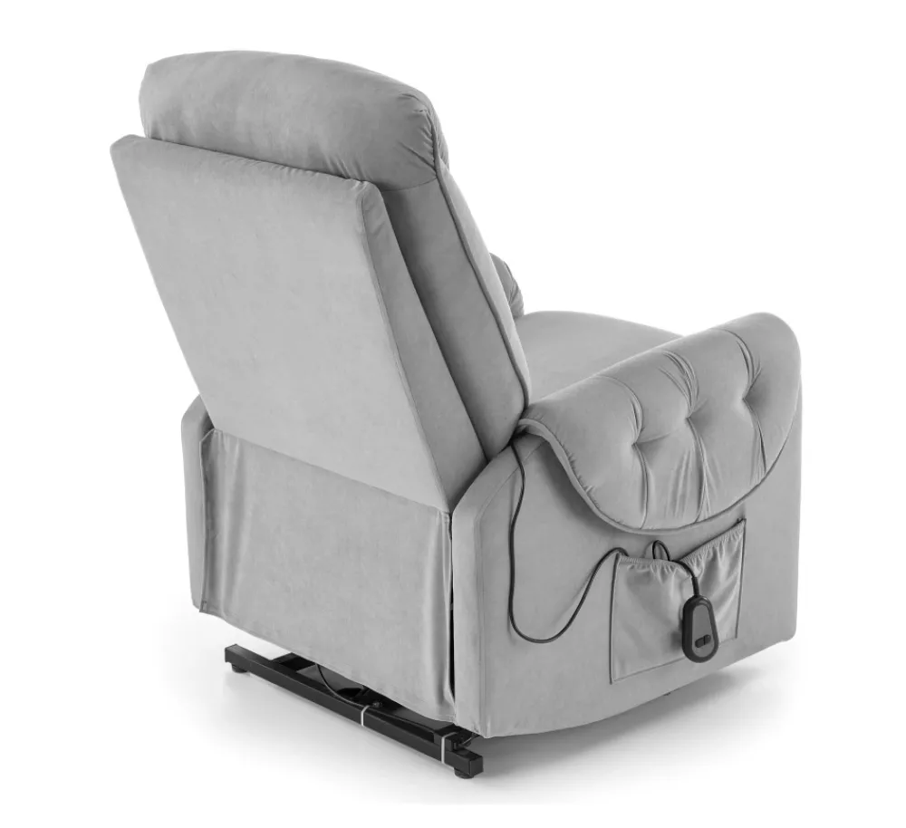 wymiary: 80/97-158/105-90/52-53 cm, fotel z funkcją elektrycznego rozkładania / funkcja pionizacji, materiał: tkanina mat velvet – MAVEL, kolor: popielaty #14
