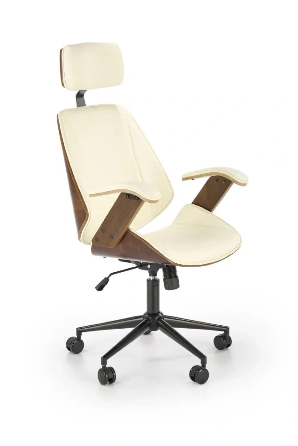 wymiary: 62/70/119-129/50-60 cm, mechanizm TILT, sklejka gięta / eco skóra, kolor: orzechowy – kremowy