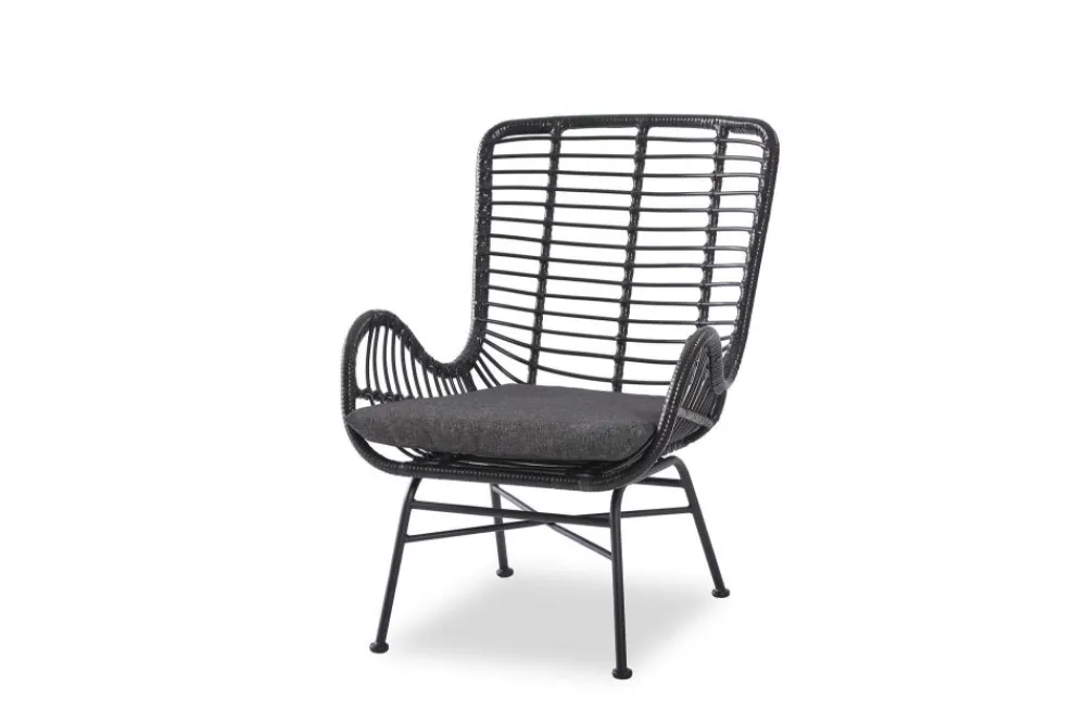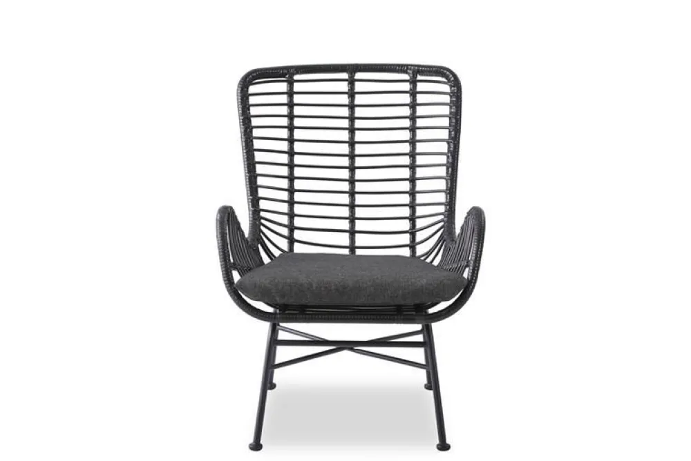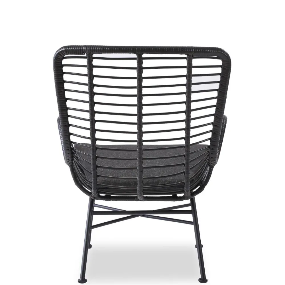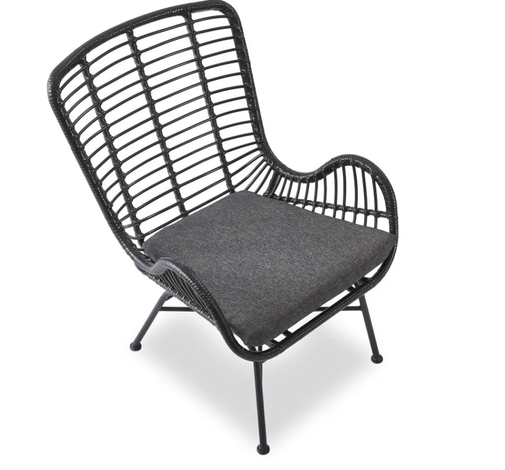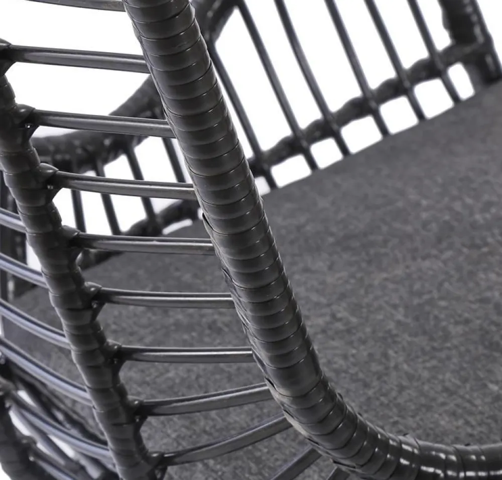 wymiary: 71/70/94/45 cm, materiał: rattan syntetyczny / stal malowana proszkowo / tkanina, kolor: czarny – popielaty