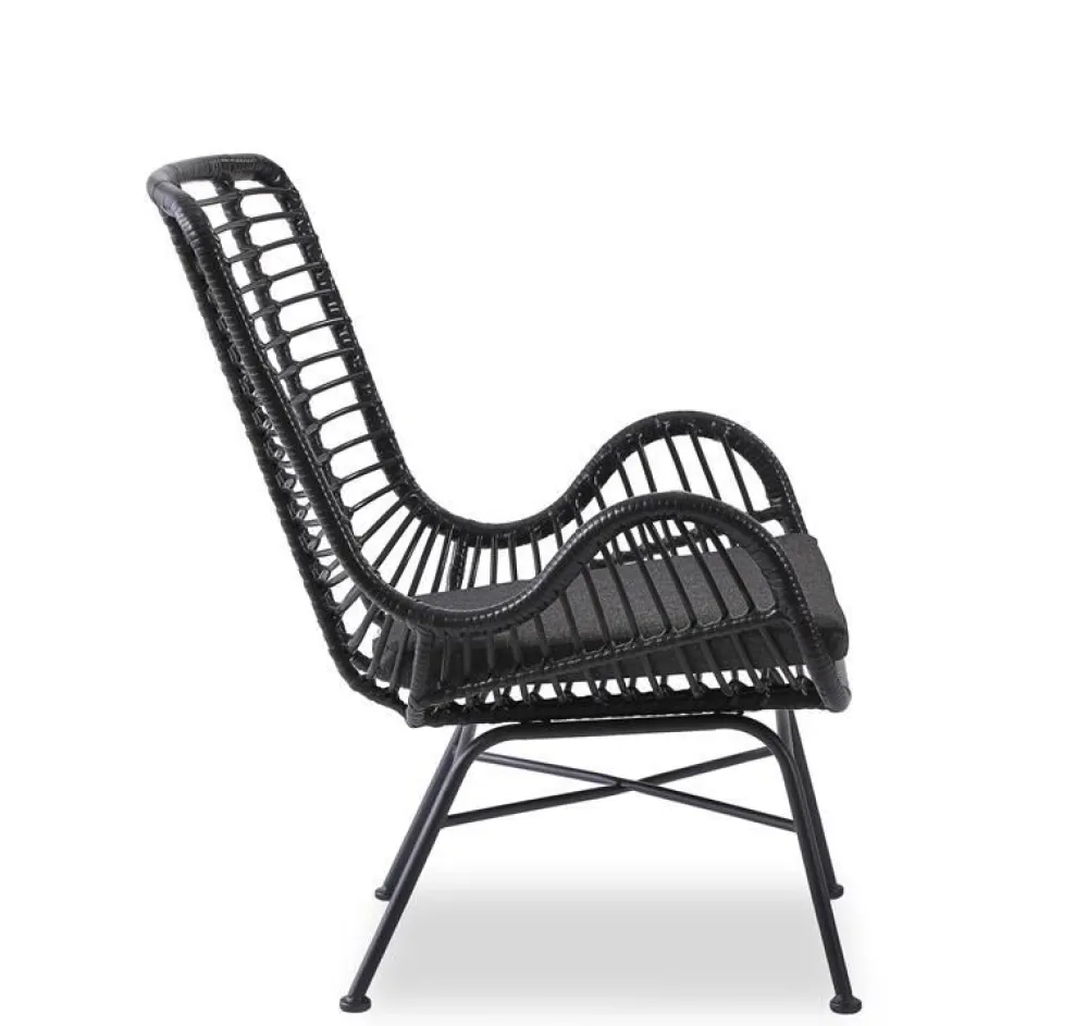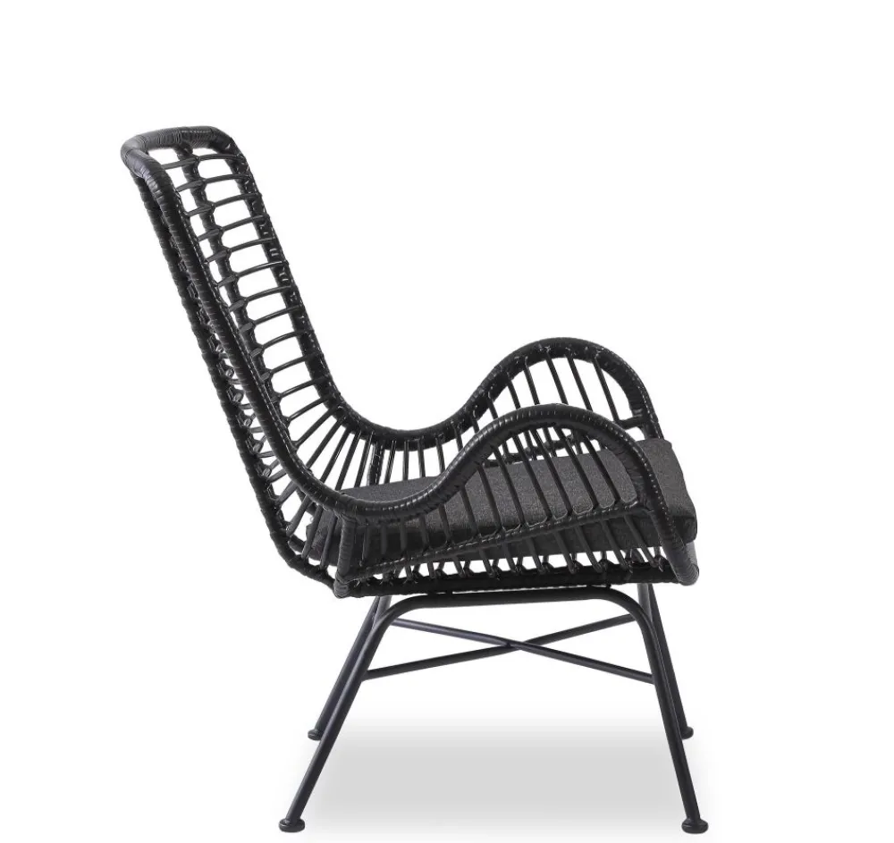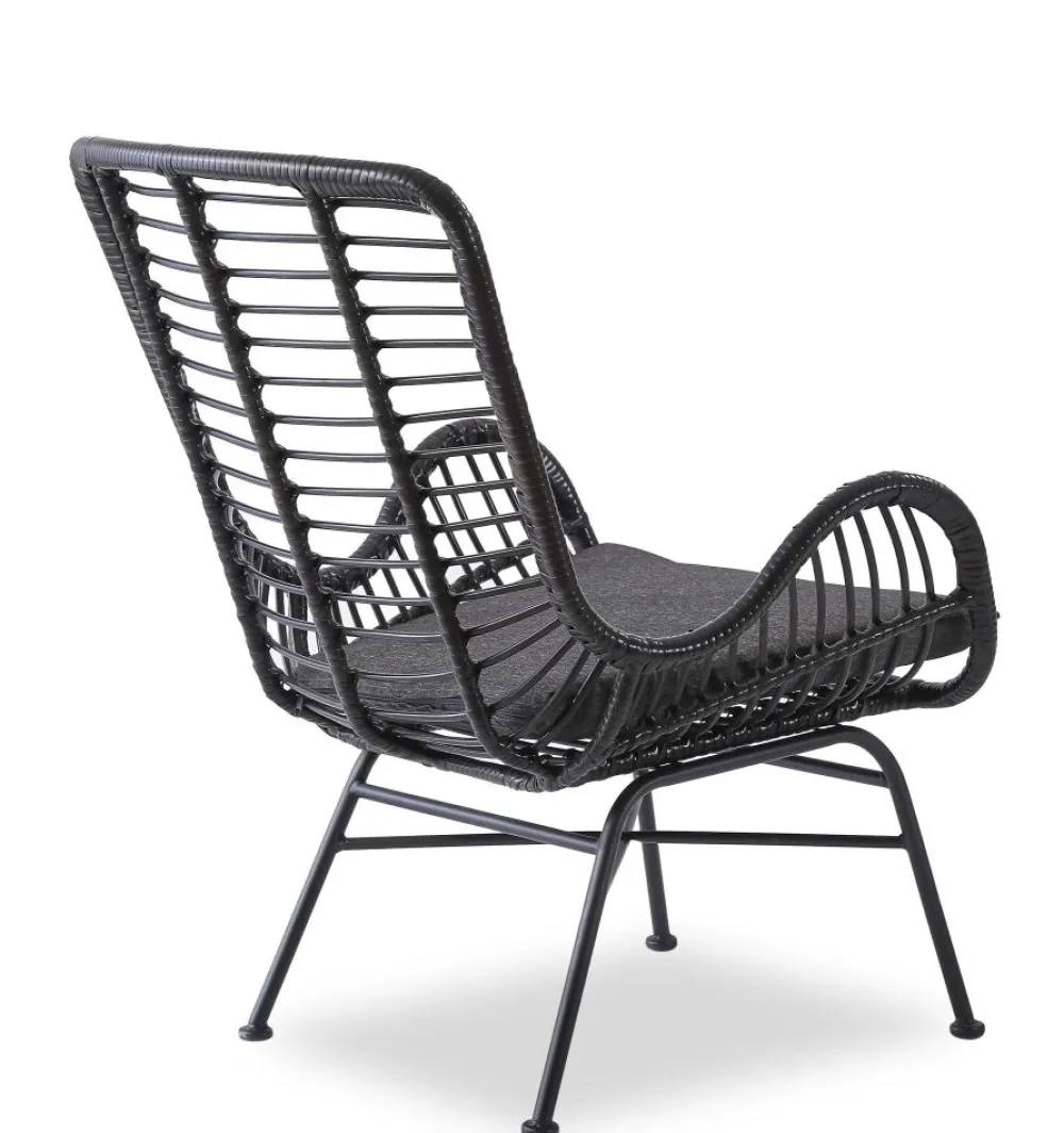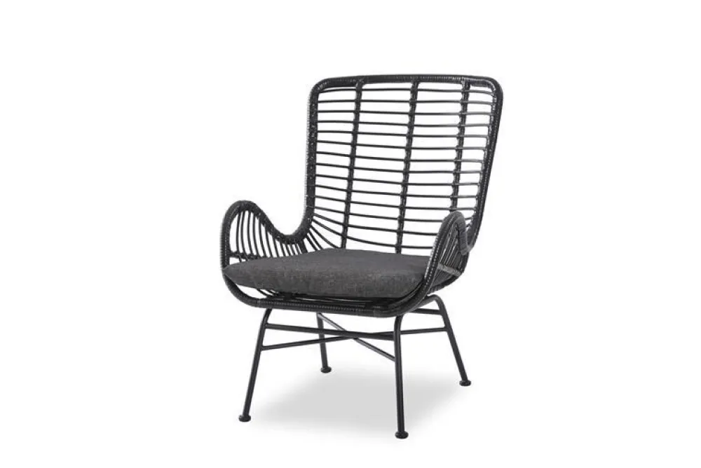 wymiary: 71/70/94/45 cm, materiał: rattan syntetyczny / stal malowana proszkowo / tkanina, kolor: czarny – popielaty