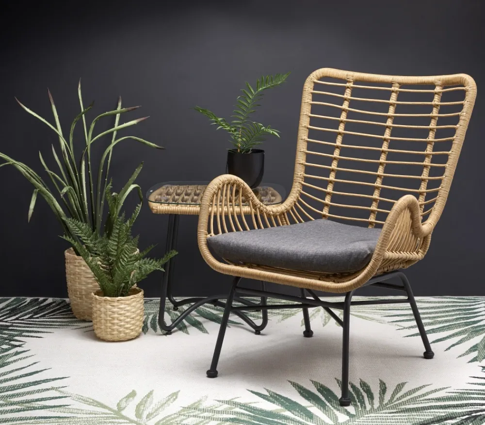wymiary: 69/58/93/42 cm, materiał: rattan syntetyczny / stal malowana proszkowo / tkanina, kolor: naturalny – popielaty