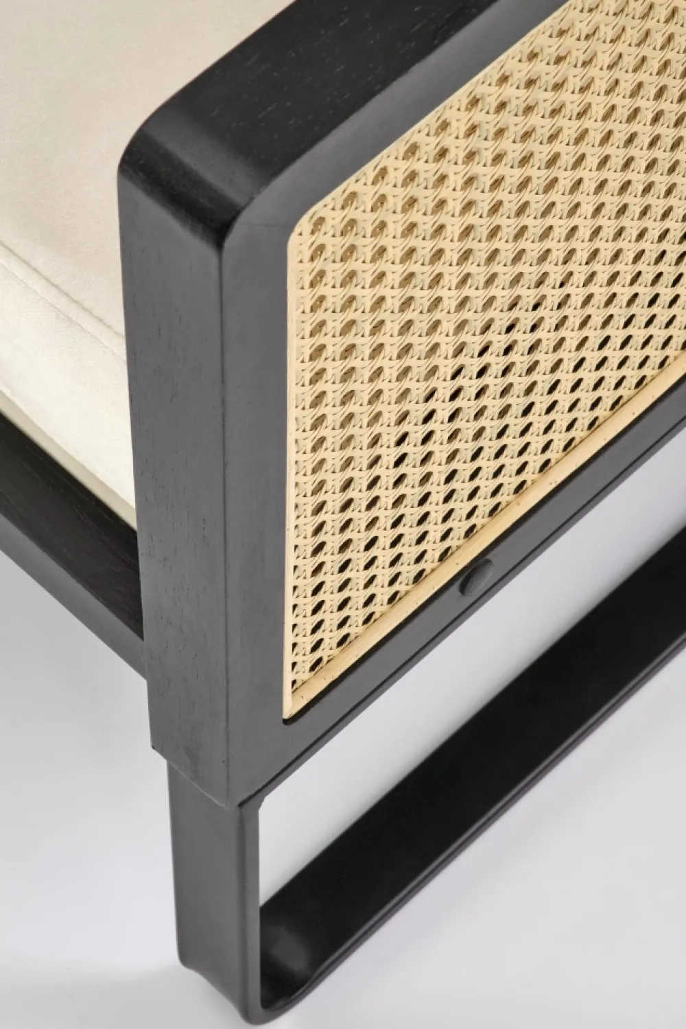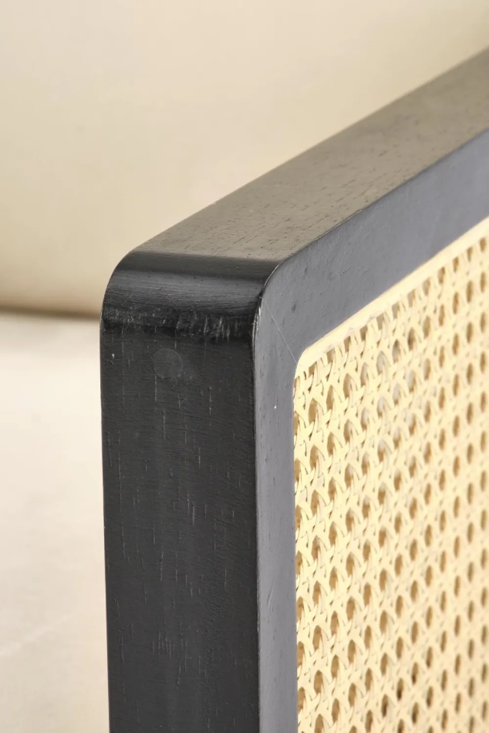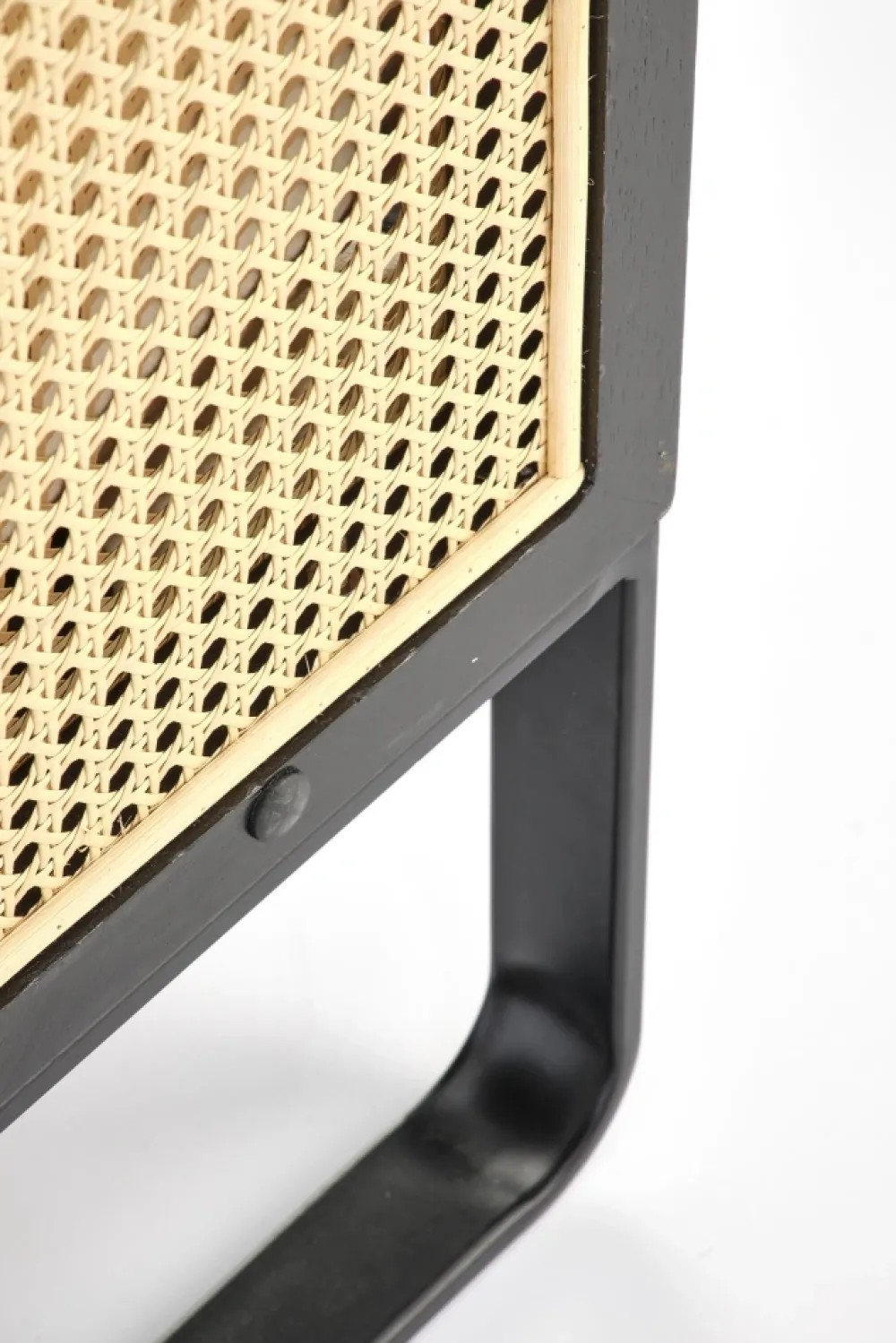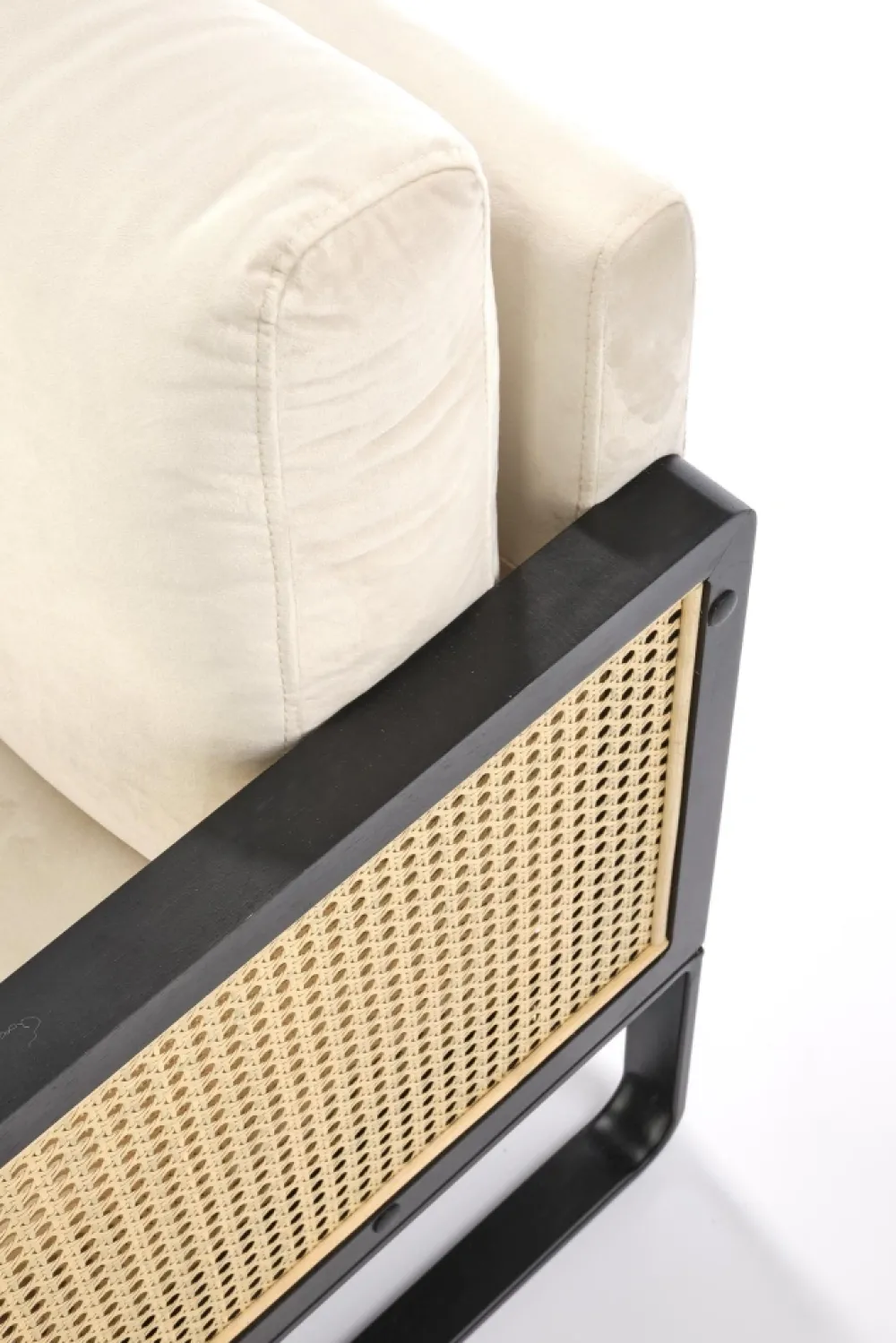 wymiary: 64/67/77/40 cm, materiał: tkanina – velvet / rattan syntetyczny / stal malowana proszkowo / drewno lite, kolor: czarny – naturalny – jasny beż