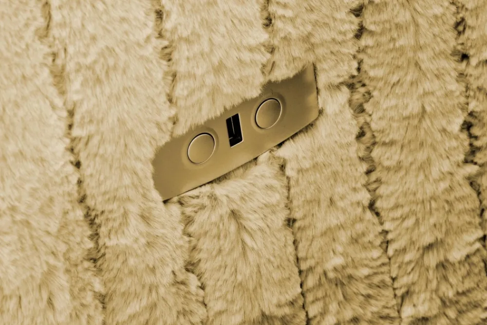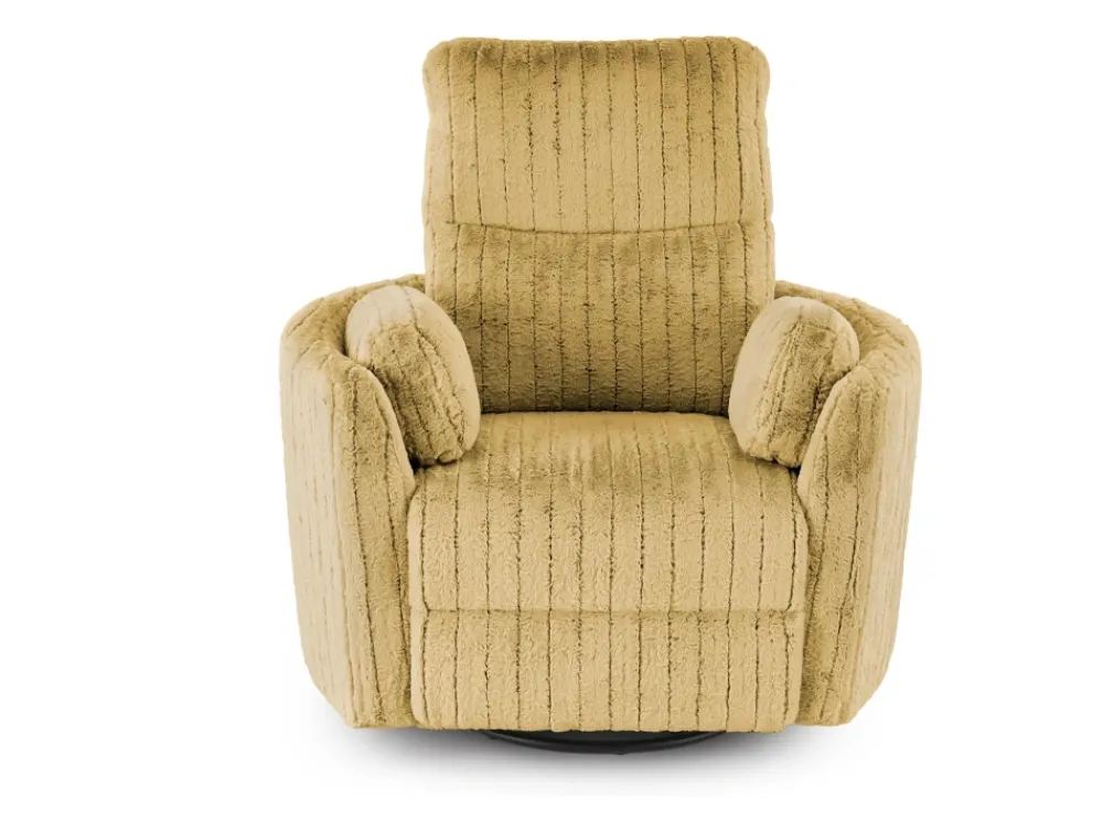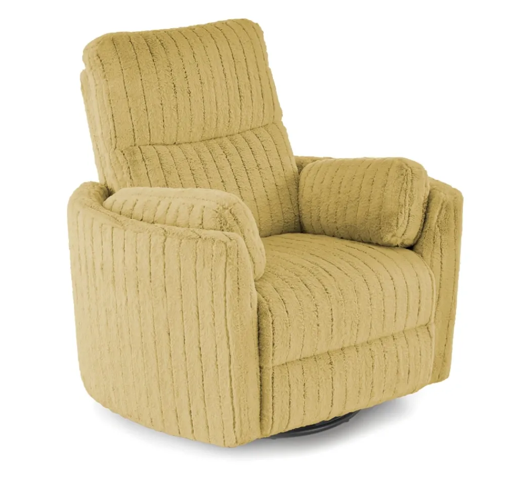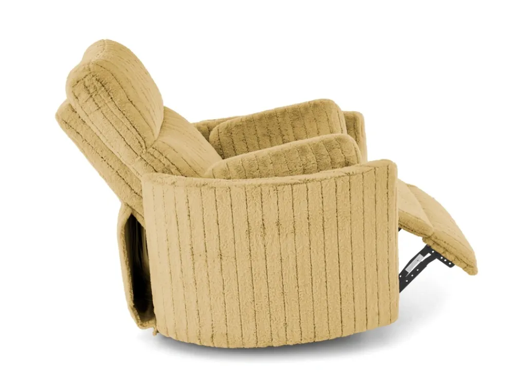 wymiary: 110/100-170/108-81/45 cm, fotel z funkcją elektrycznego rozkładania / funkcja obracania / funkcja kołyski, materiał: tkanina, kolor: musztardowy