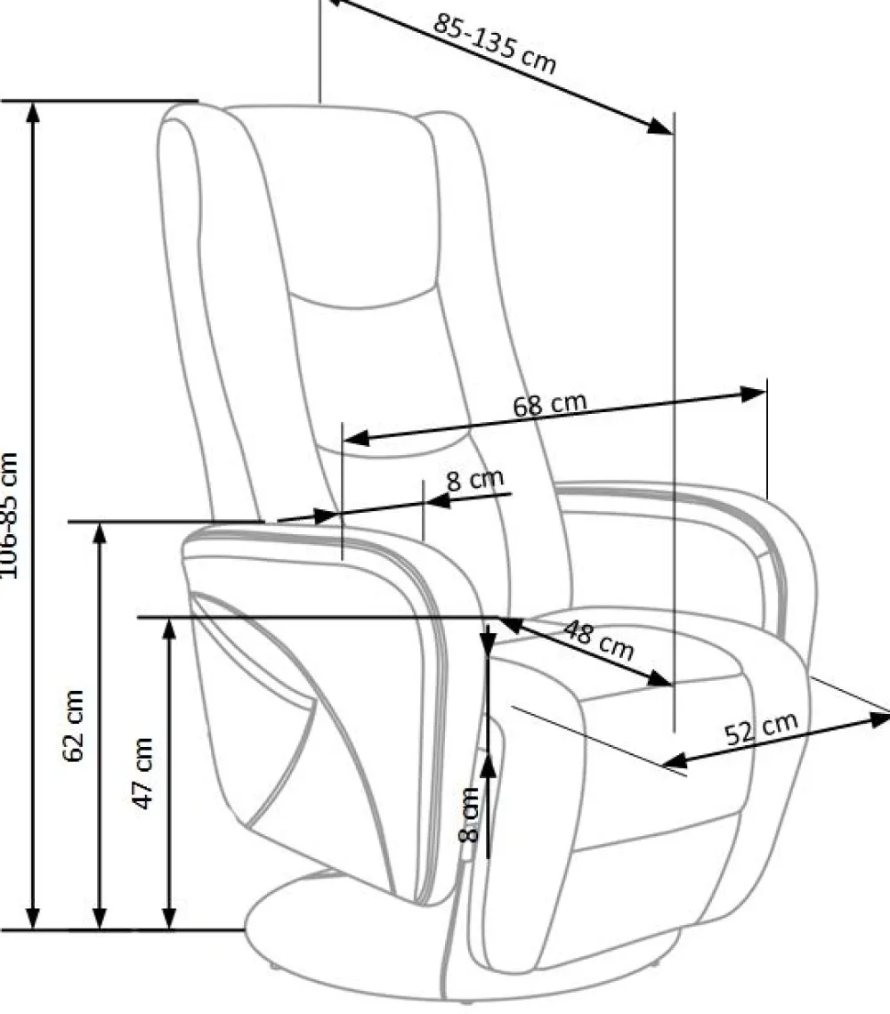 wymiary: 68/85-135/106-85 cm, fotel rozkładany z funkcją masażu, materiał: eco skóra / PVC, kolor: popiel
