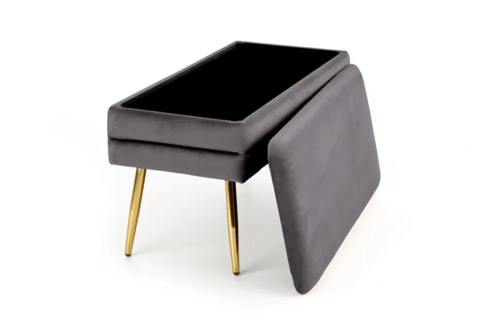 wymiary: 78/42/37 cm, ławka z funkcją pojemnika, materiał: tkanina velvet / stal chromowana lub stal malowana proszkowo, kolor: popielaty / złoty