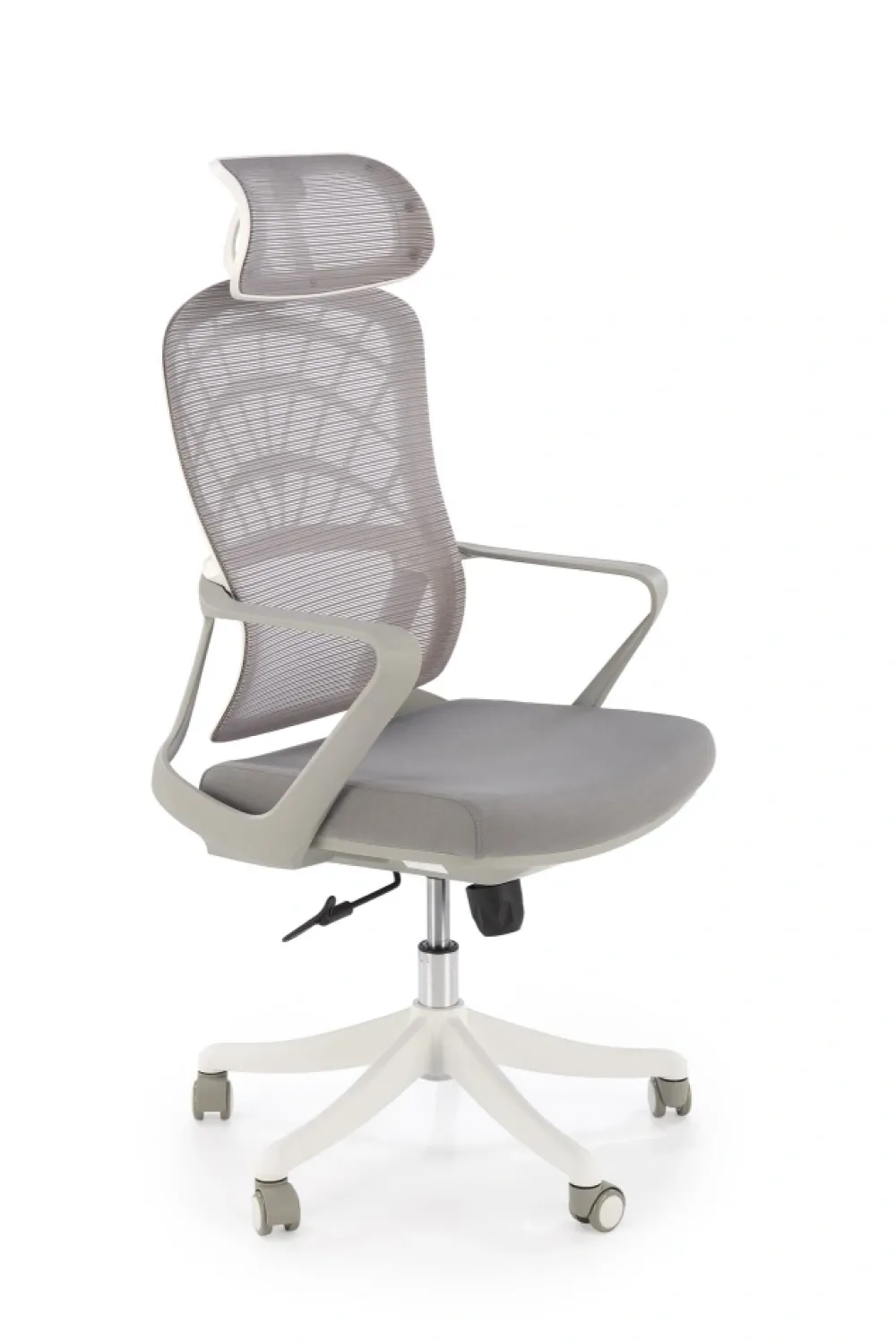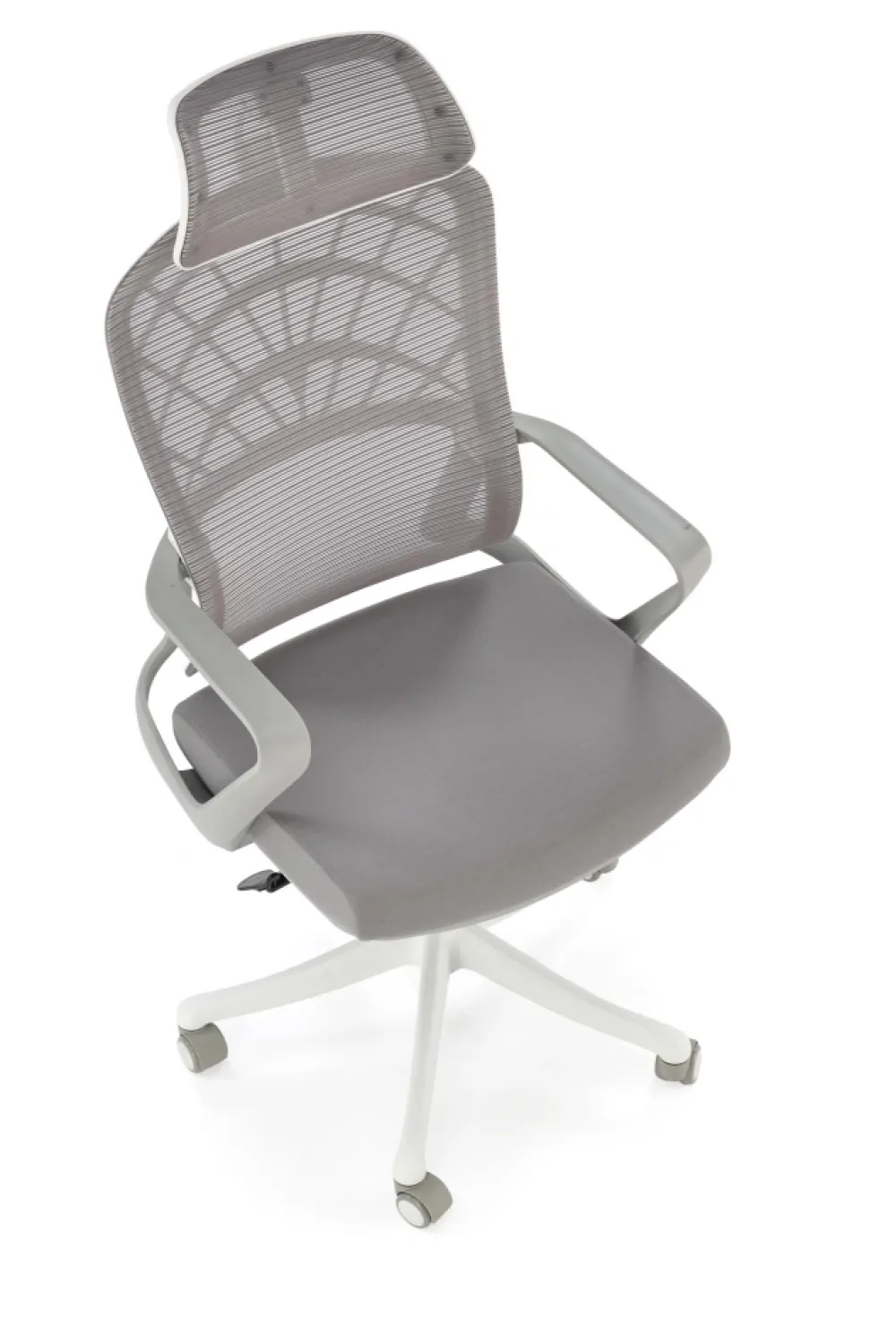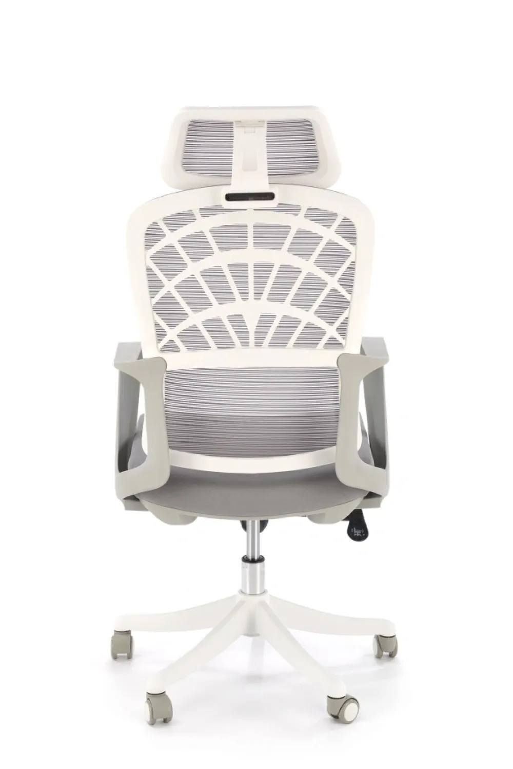 wymiary: 59/59/115-121/45-51 cm; mechinizm TILT / regulowany zagłówek, tkanina / siatka, kolor: popielaty / biały