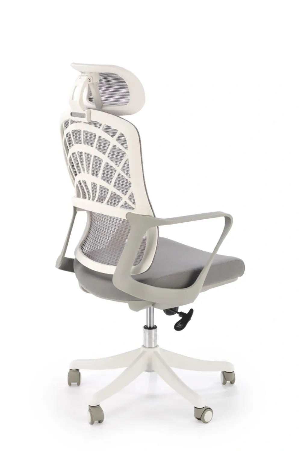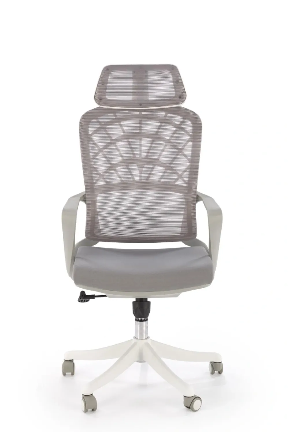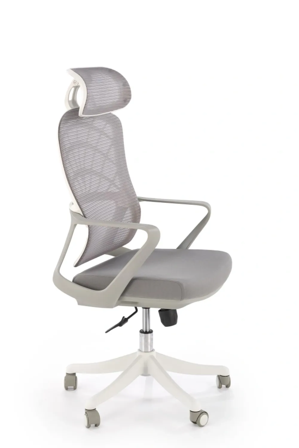 wymiary: 59/59/115-121/45-51 cm; mechinizm TILT / regulowany zagłówek, tkanina / siatka, kolor: popielaty / biały