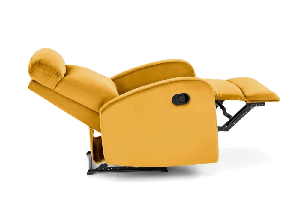 fotel rozkładany z funkcją kołyski, wymiary: 75/95-140/90-98/50 cm, materiał: tkanina – velvet, kolor: musztardowy – BLUVEL 68