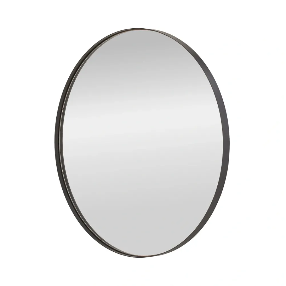 lustro ścienne, wymiary: 70/70/2 cm, materiał: rama – szczotkowana, malowane żelazo / podkład – płyta MDF / lustro, kolor: czarny