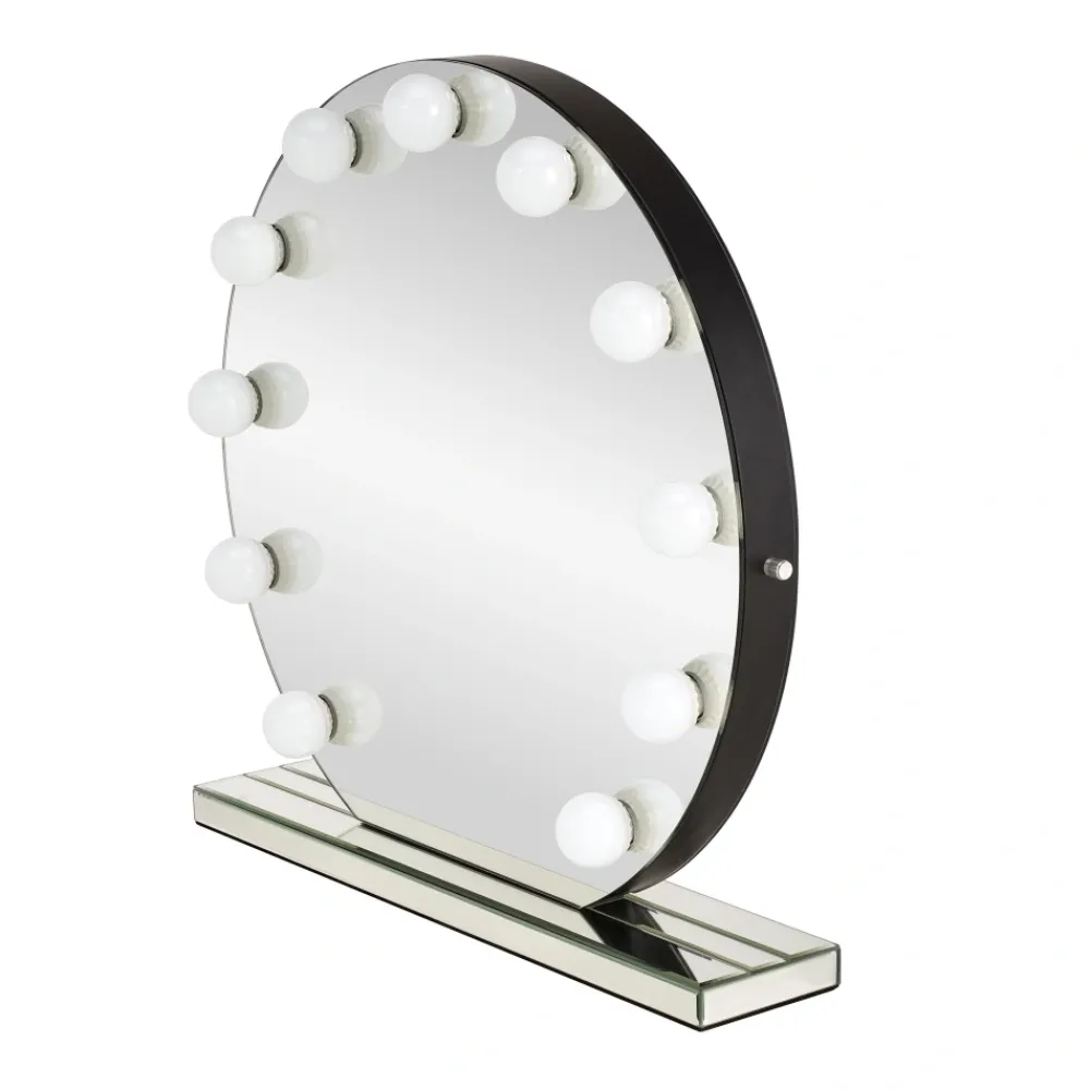 lustro stołowe, wymiary: 70/70/6,5 cm, materiał: bez ramy / podkład – płyta MDF / żarówki LED / lustro, kolor: srebrnyzasilanie 230V