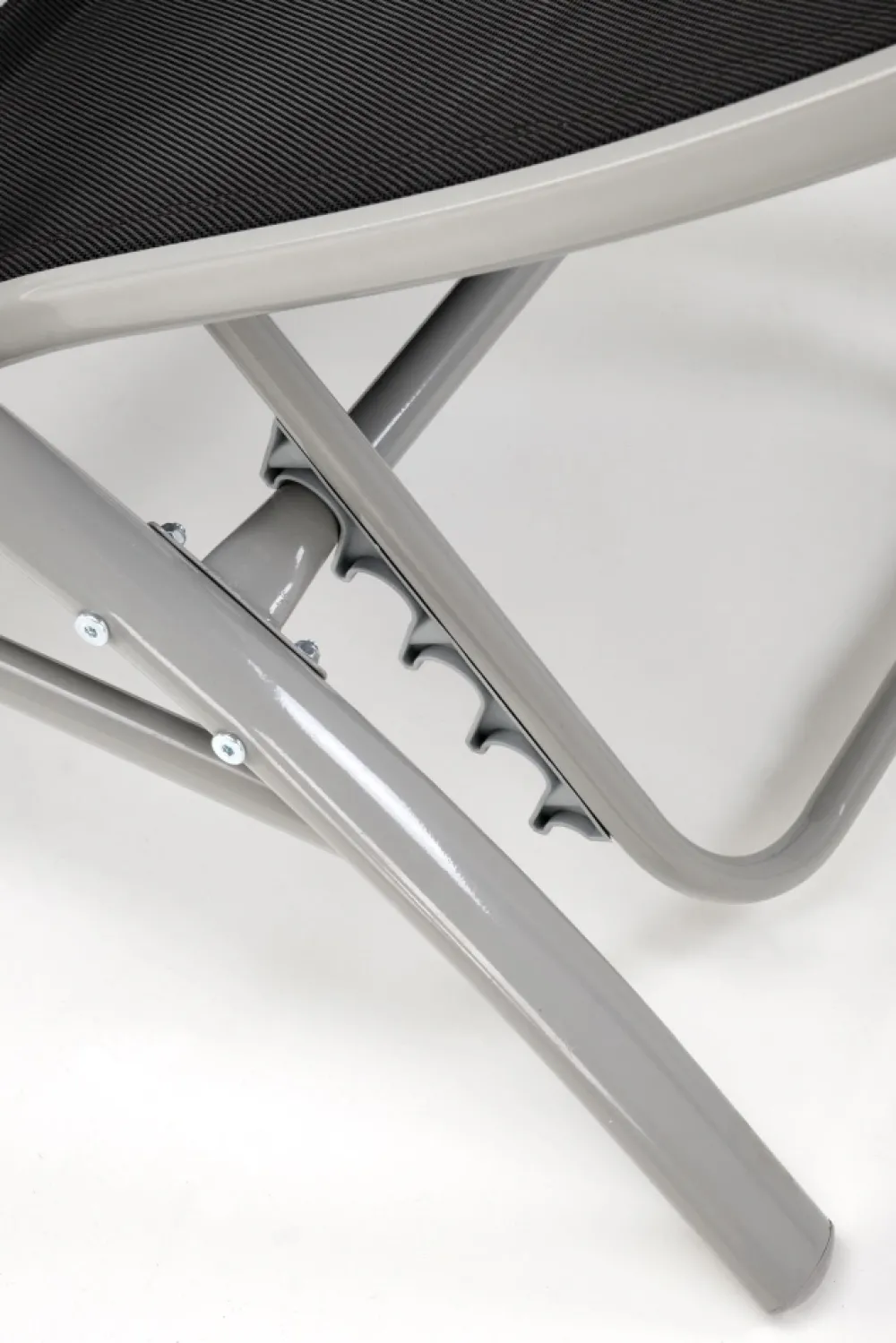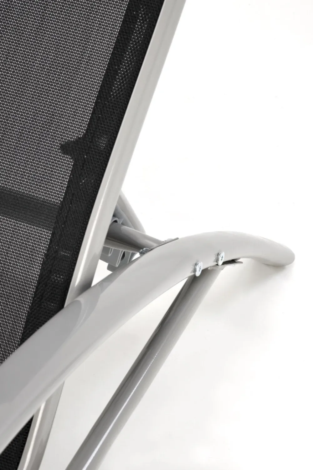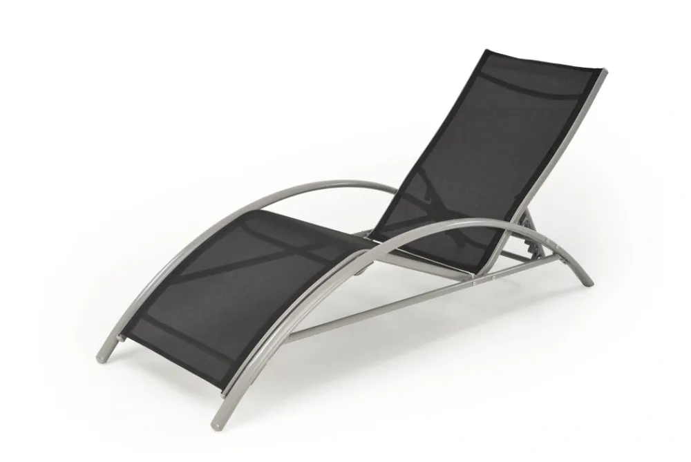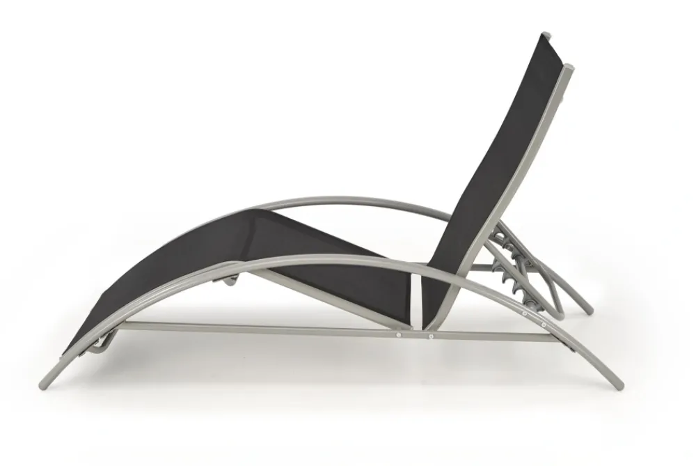 zestaw 2 leżaków ze stolikiem, wymiary: 160/60/66-92 cm – leżak, 30/30/30 cm – stolik, materiał: siatka / stal malowana proszkowo, kolor: czarny / jasny popiel