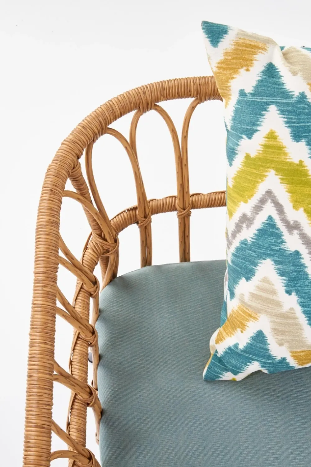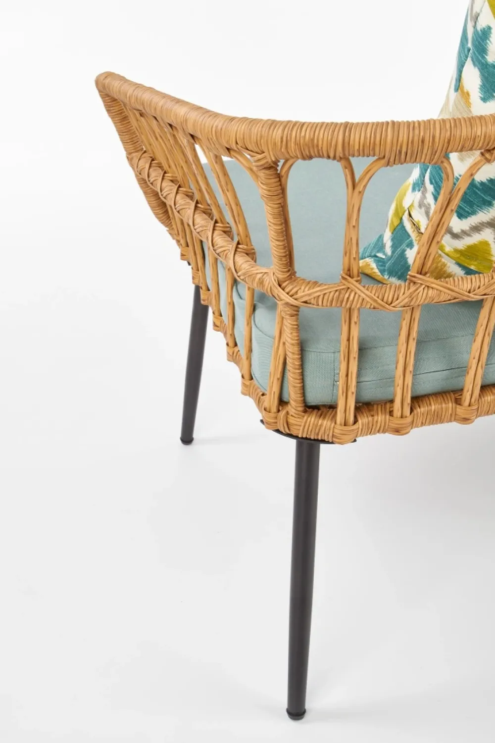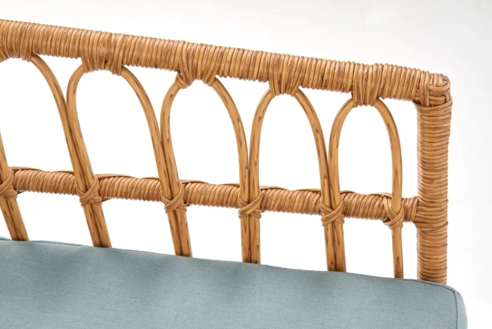 wymiary: 140/58/71/38 cm, materiał: rattan syntetyczny / stal malowana proszkowo / tkanina, kolor: naturalny – wielobarwny