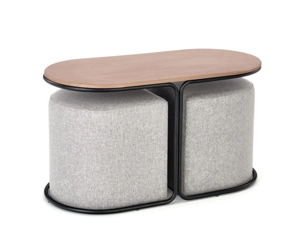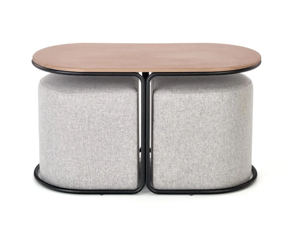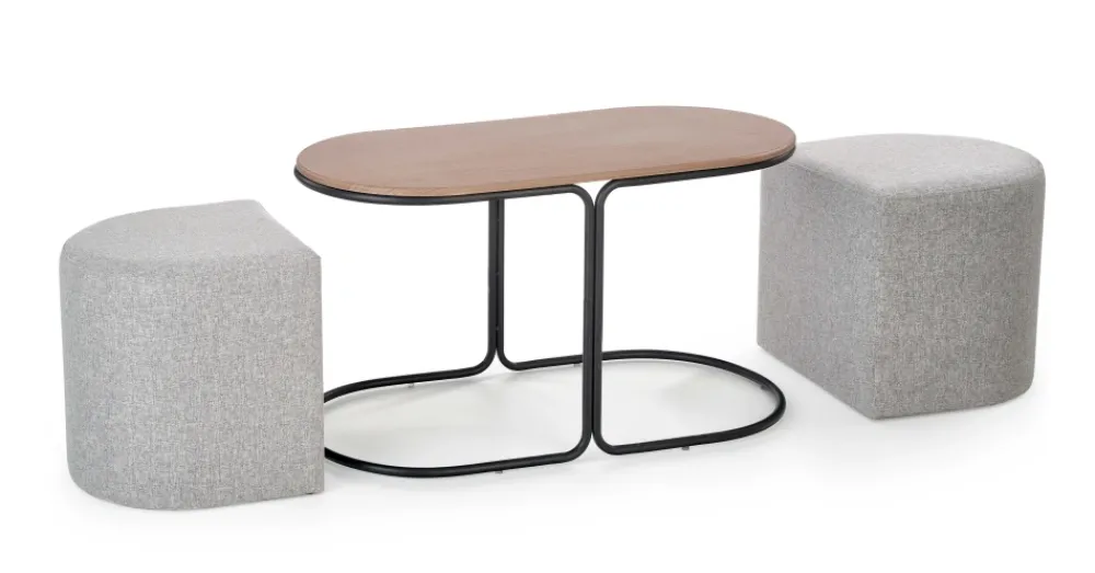 Halmar Pufy Do Salonu|Ławy I Stoliki Do Salonu*PAMPA, ława z pufami, blat: orzech, nogi: czarny, pufa: popielaty (1p=1szt)1 sztuka
