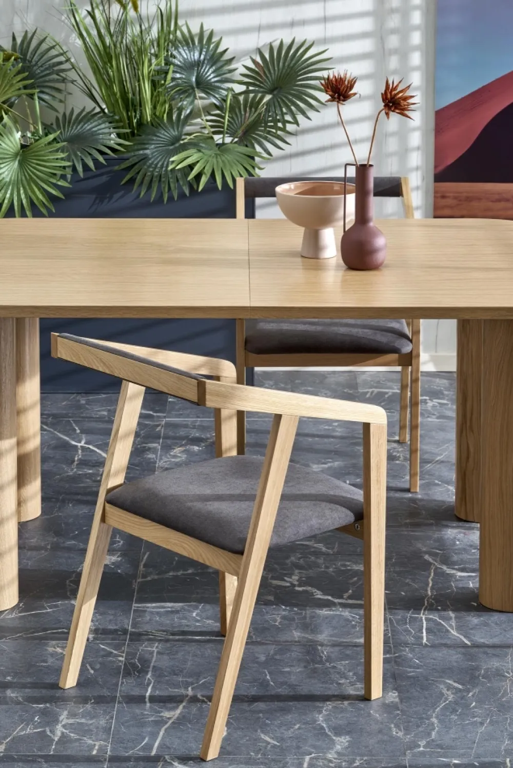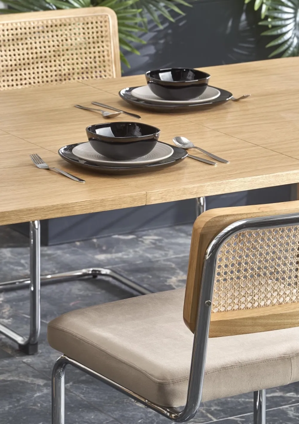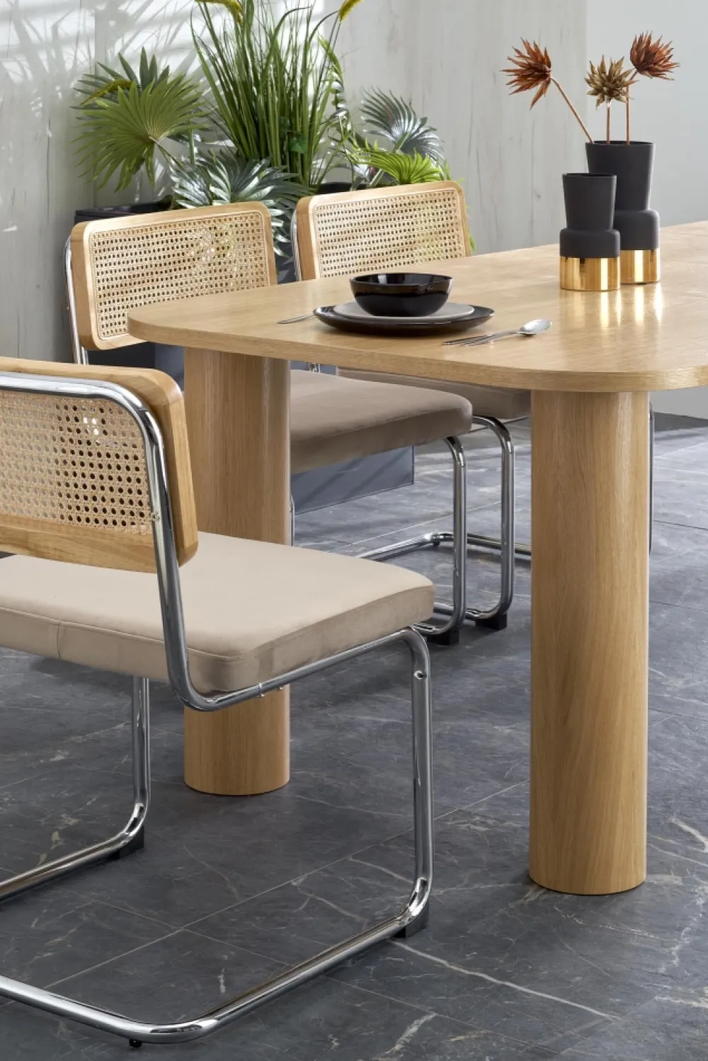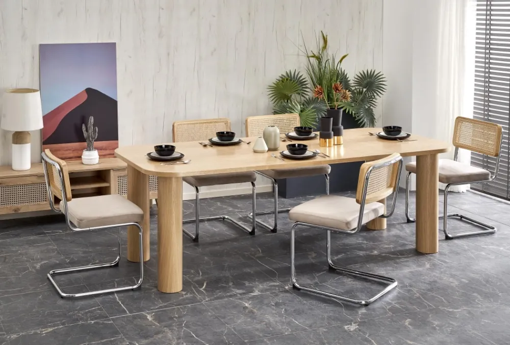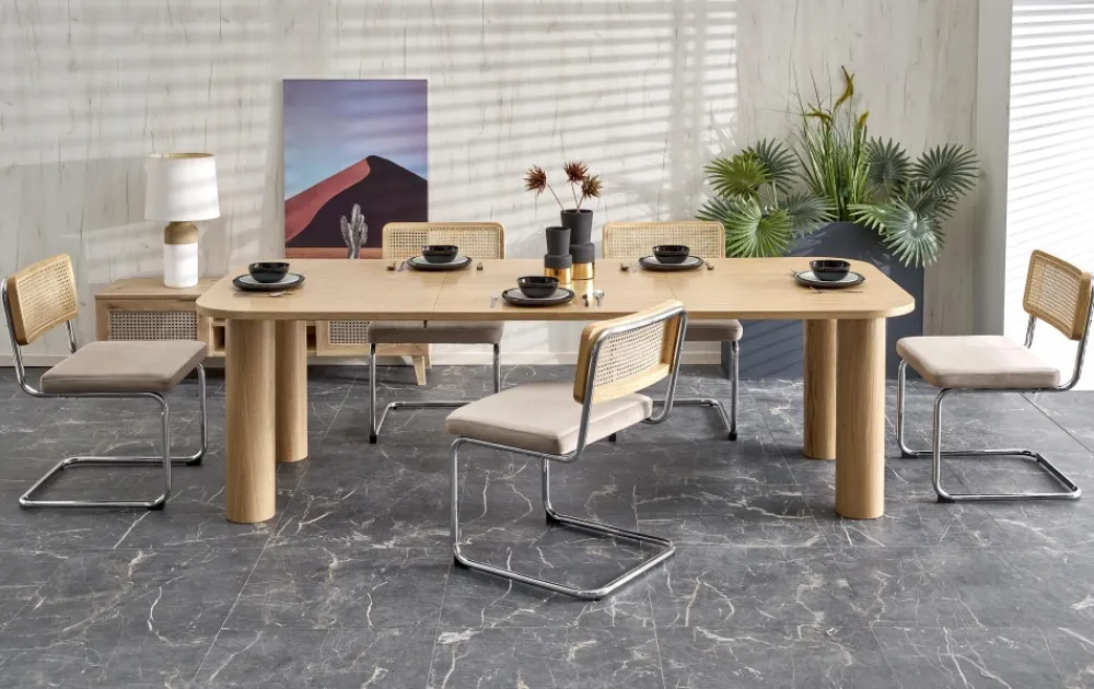 wymiary: 160-240/100/77 cm, stół rozkładany, materiał: MDF + okleina naturalna – dębowa, kolor: dąb naturalny