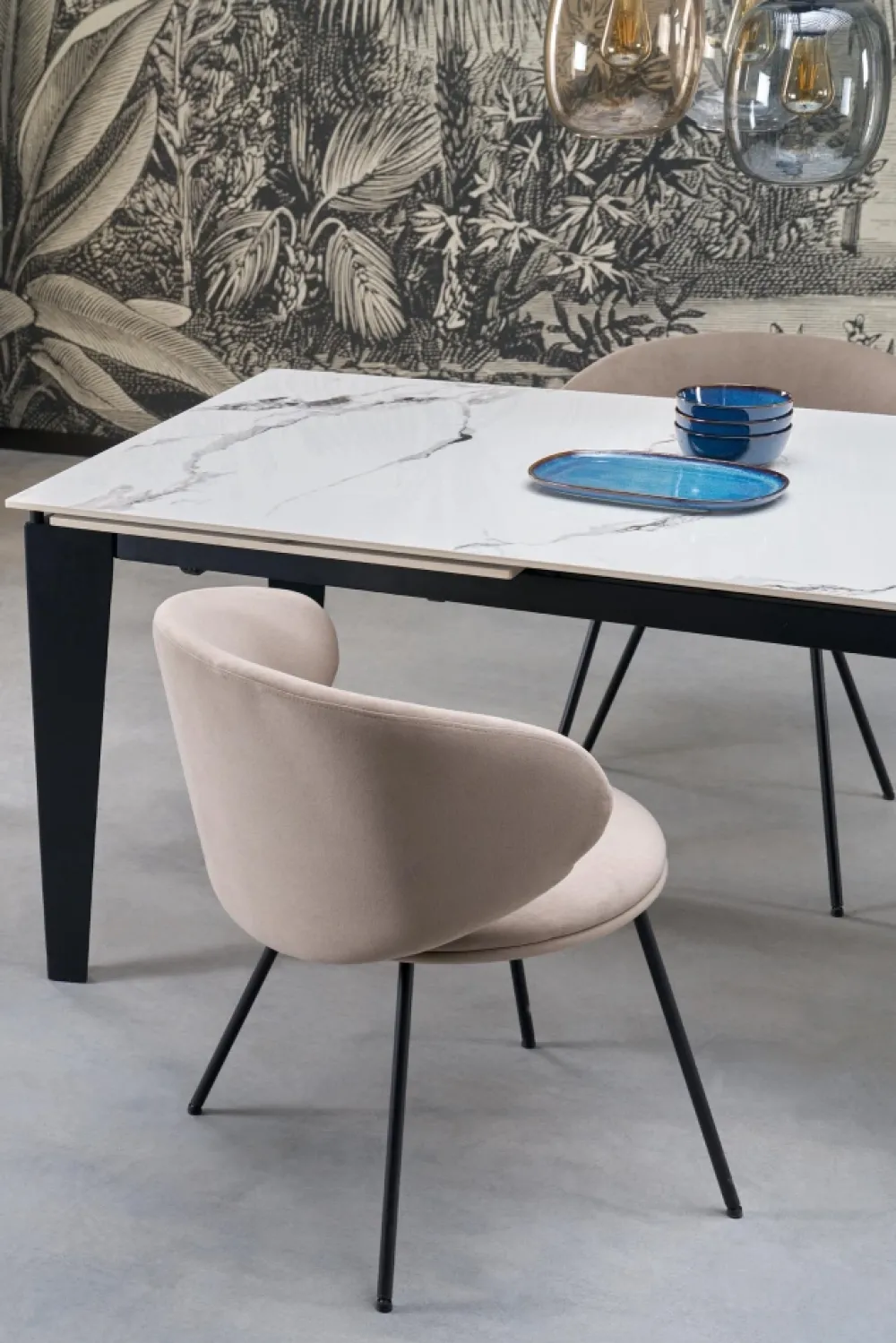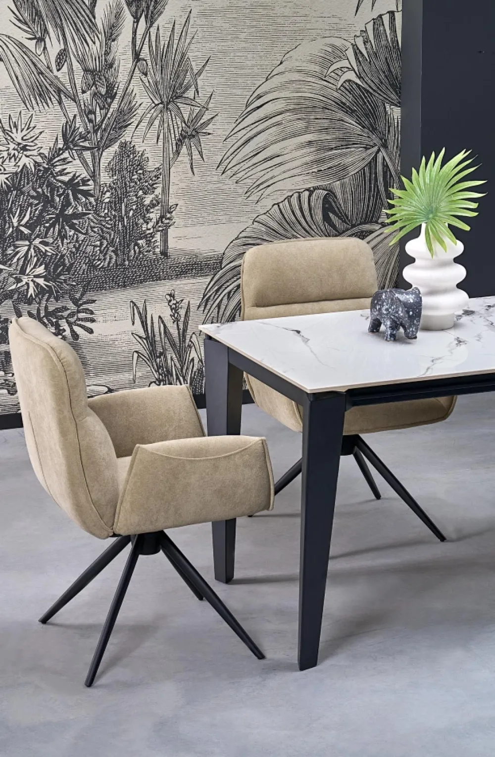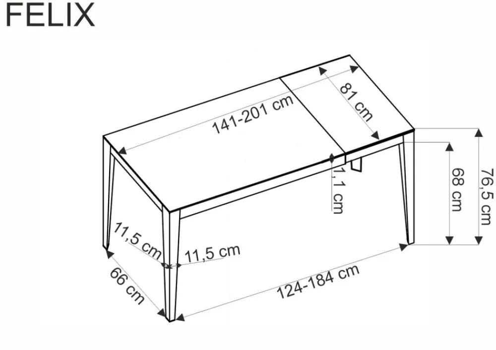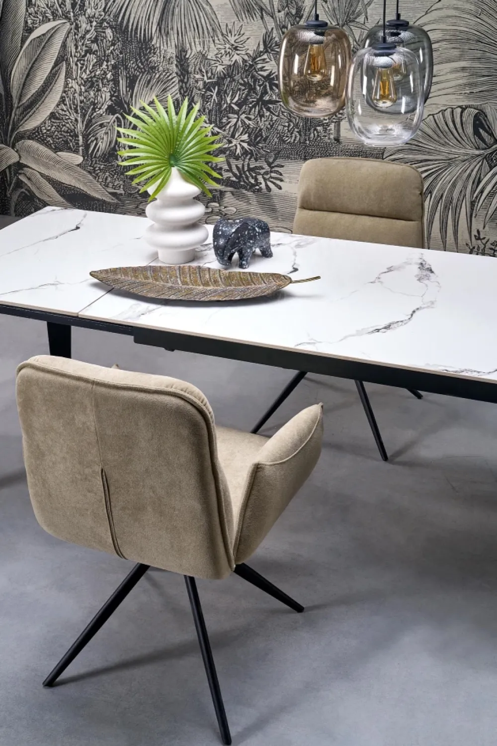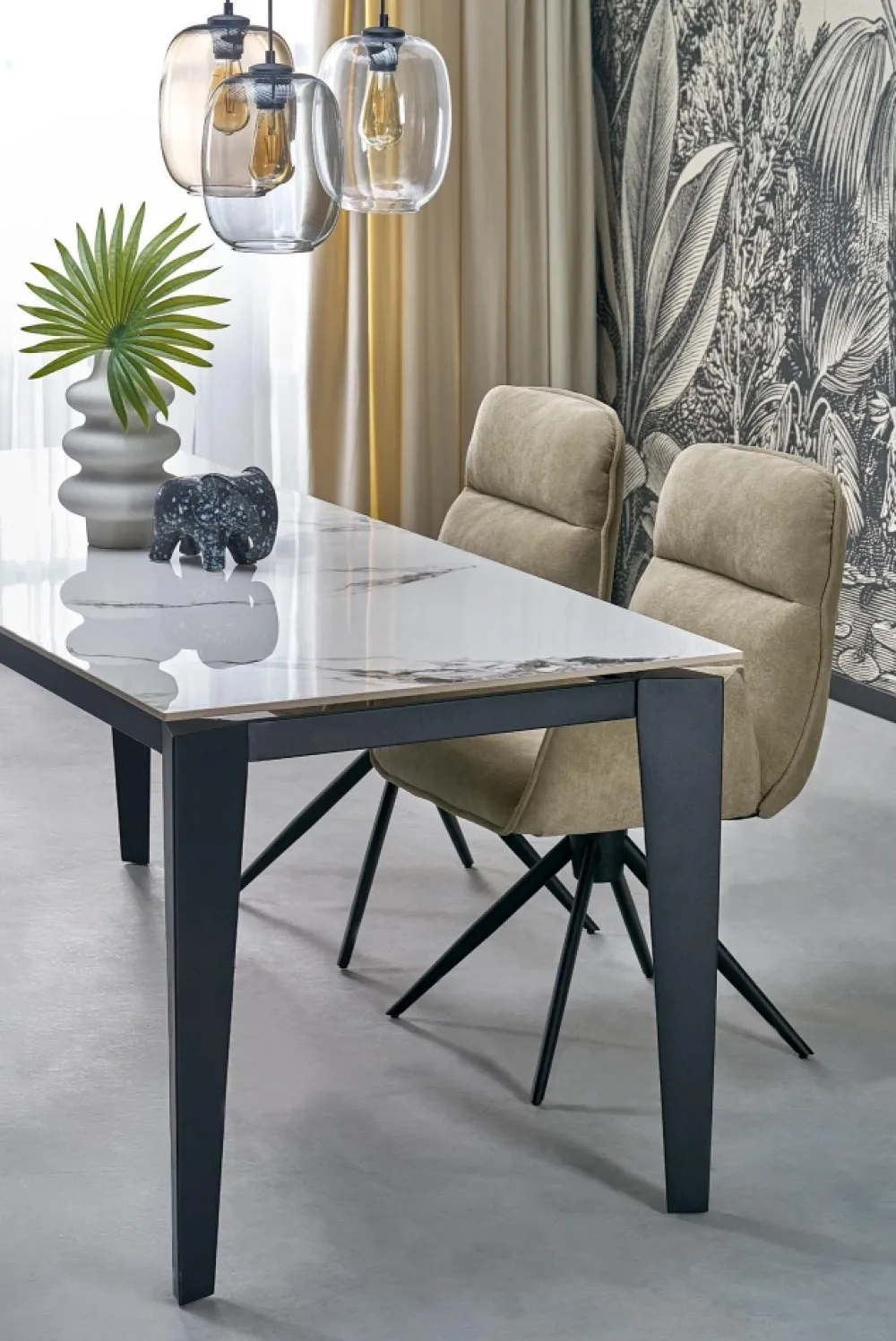 wymiary: 141-201/81/76/124-184 cm; stół rozkładany, materiał: spiek / stal malowana proszkowo, kolor: blat – biały marmur, nogi – czarny