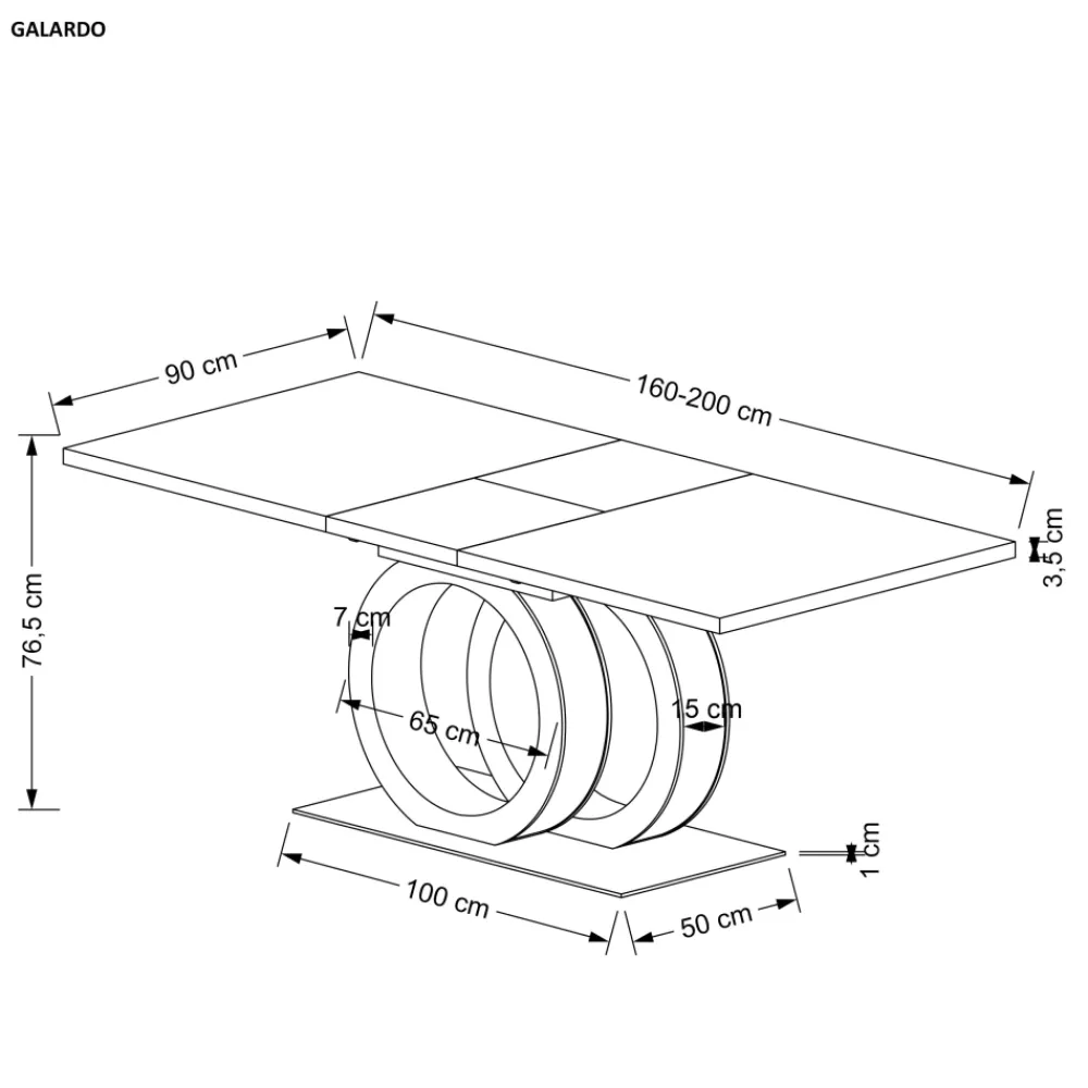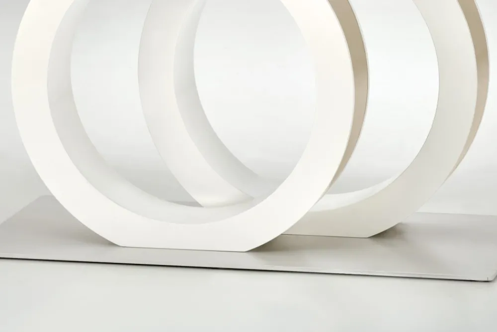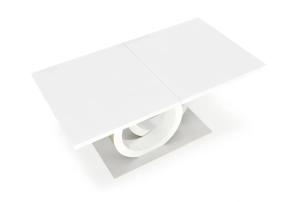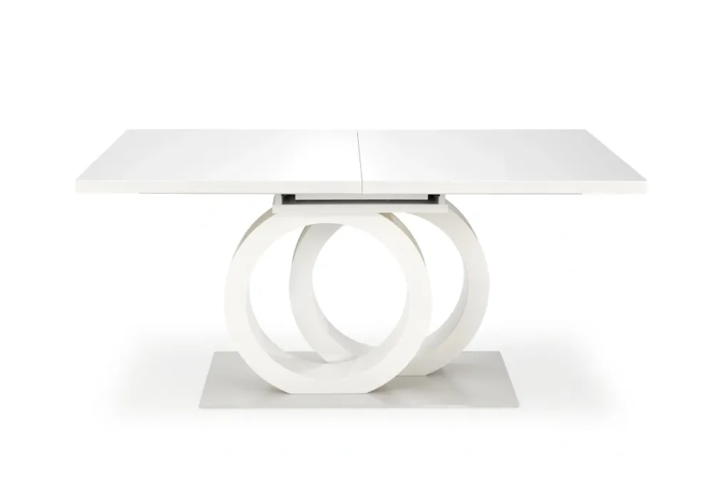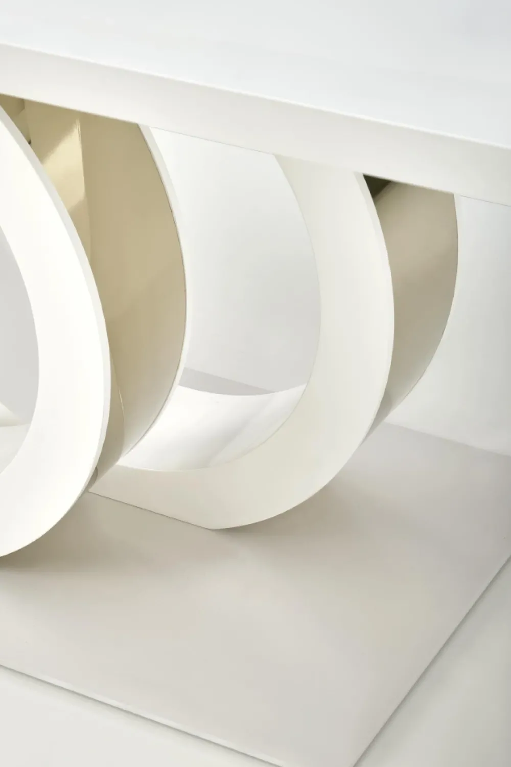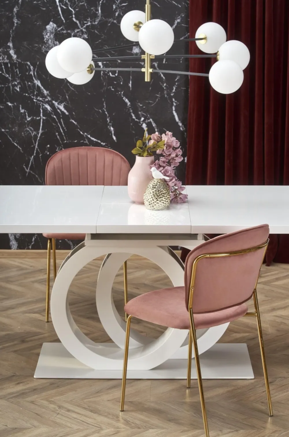 wymiary: 160-200/90/76 cm, stół rozkładany, materiał: MDF lakierowany / stal nierdzewna / stal malowana proszkowo, kolor: biały – złoty