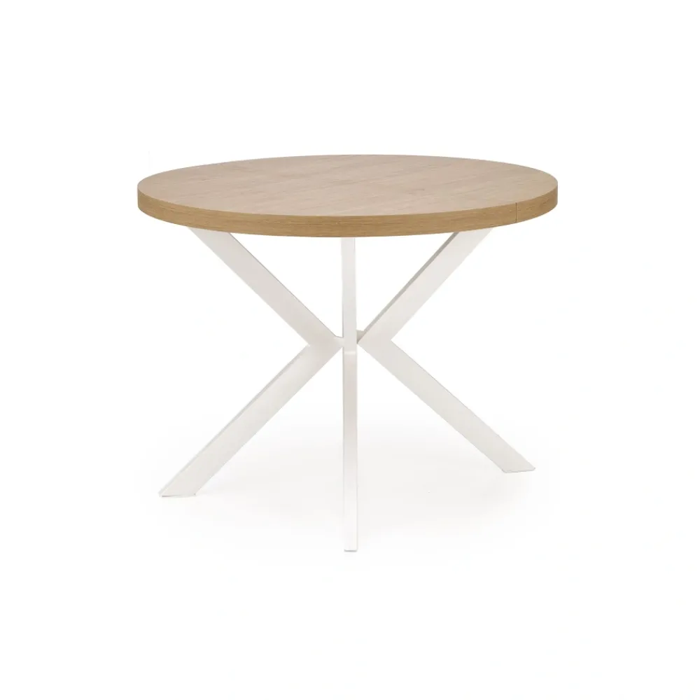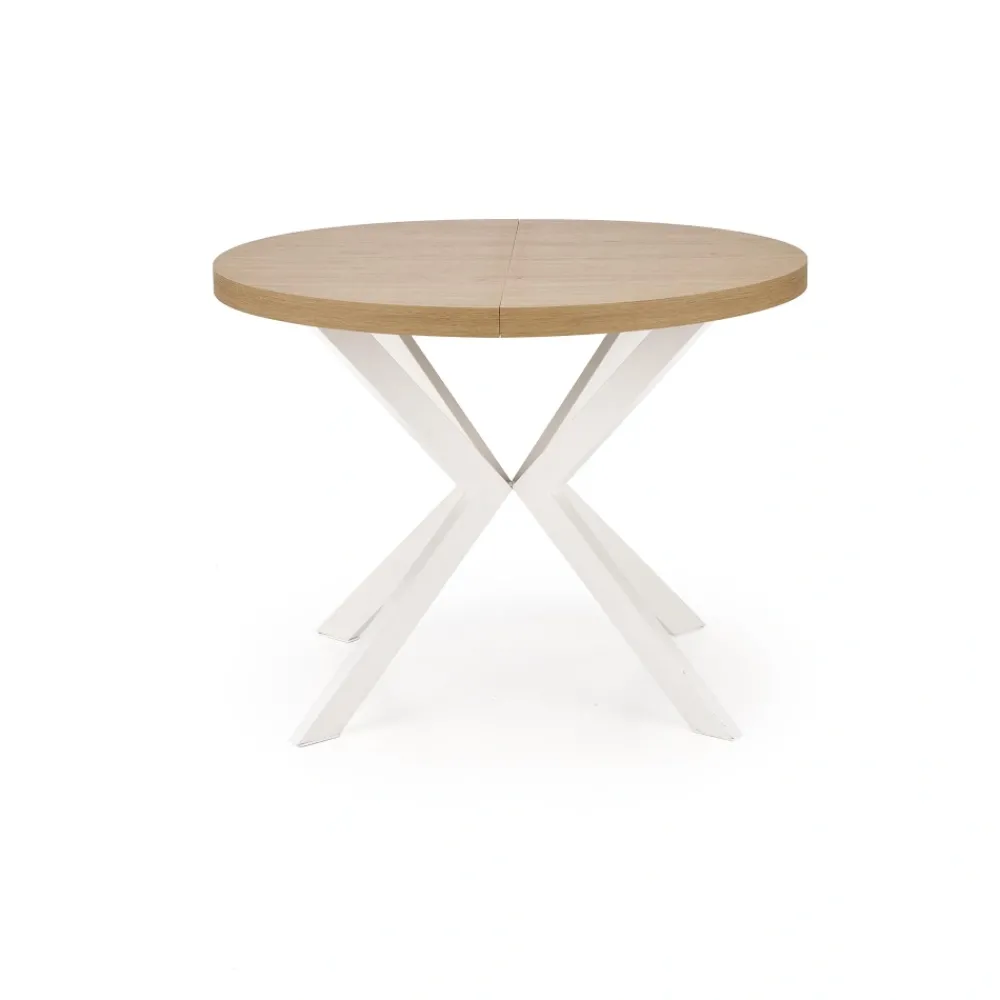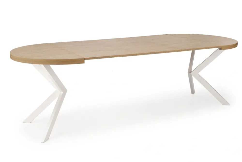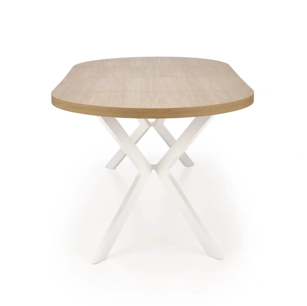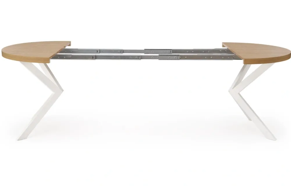 wymiary: fi100-250/100/75 cm, stół rozkładany, materiał: płyta meblowa okleinowana / stal malowana proszkowo, kolor: dąb złoty – biały