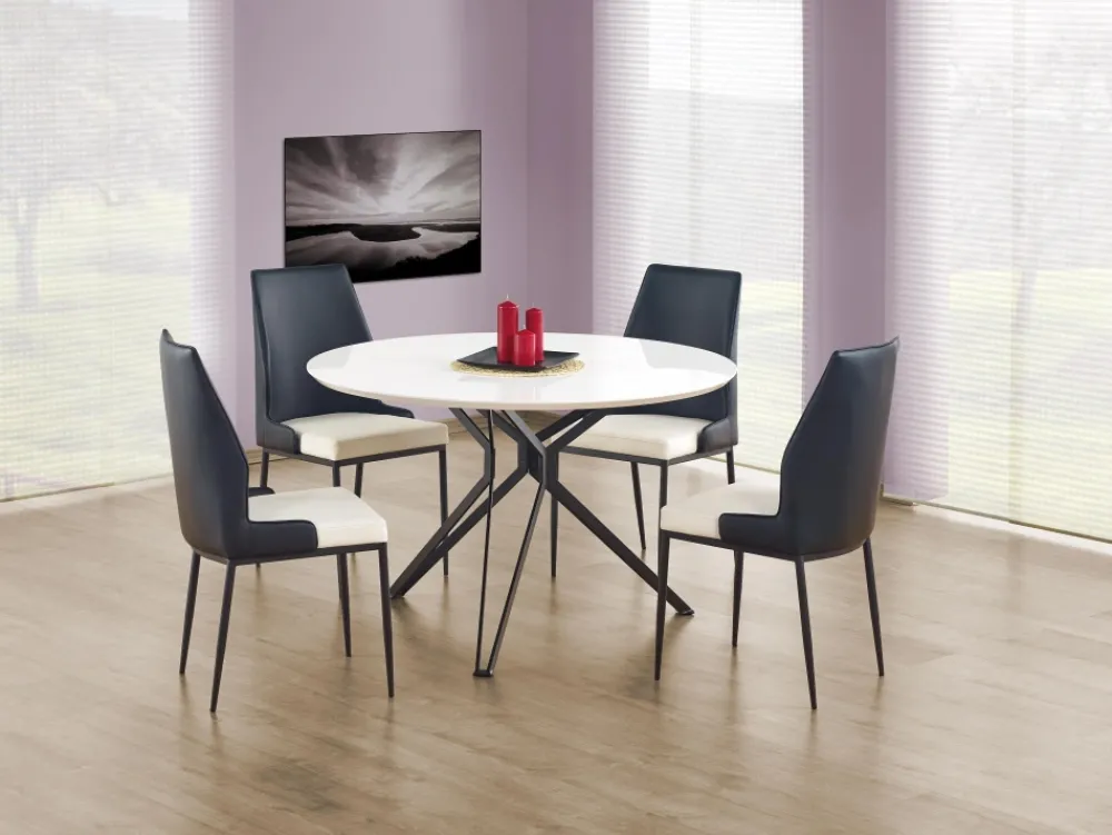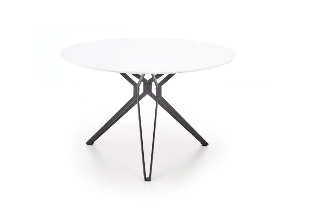 wymiary: fi120/76 cm, materiał: MDF lakierowany / stal malowana proszkowo, kolor: blat – biały, stelaż – czarny