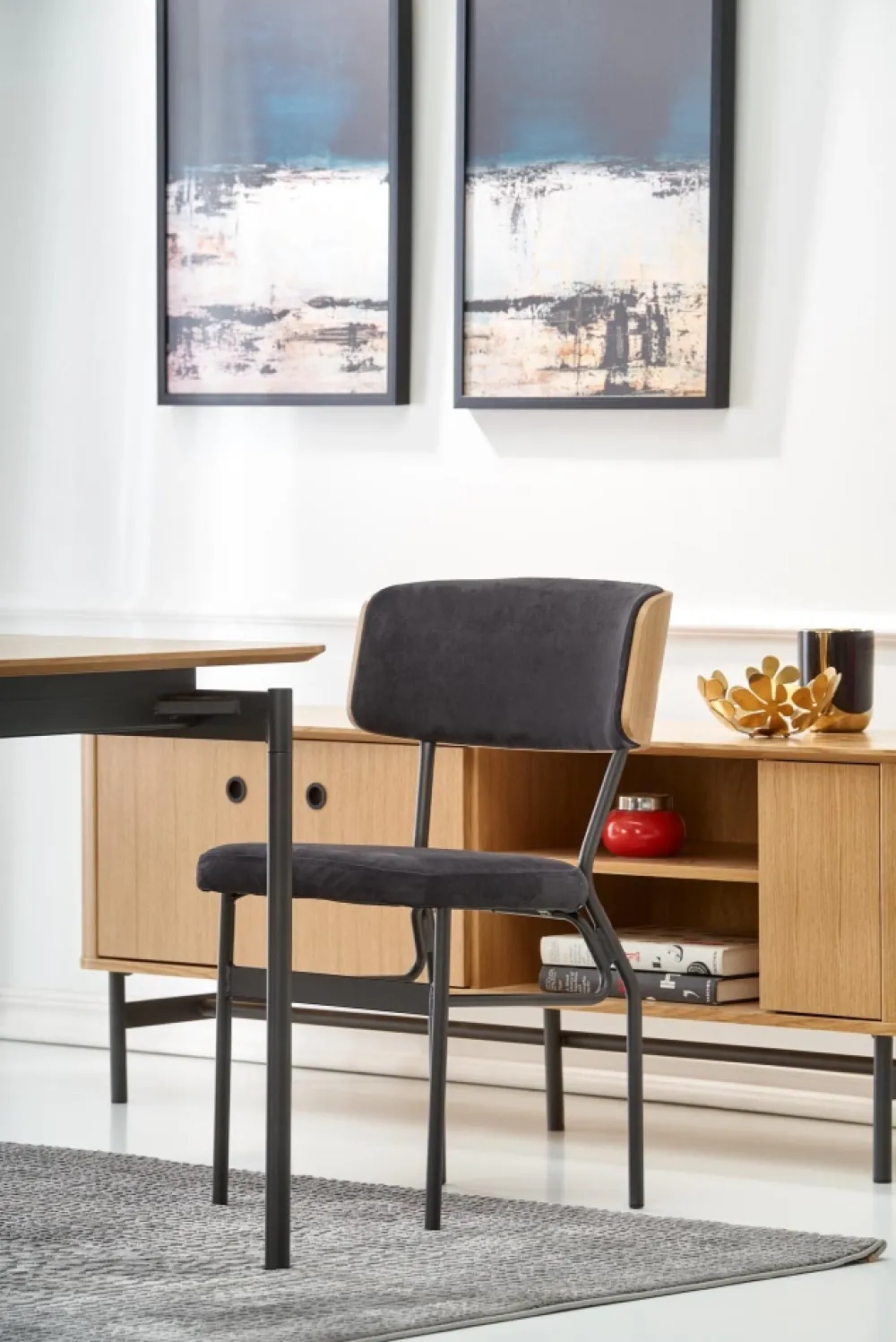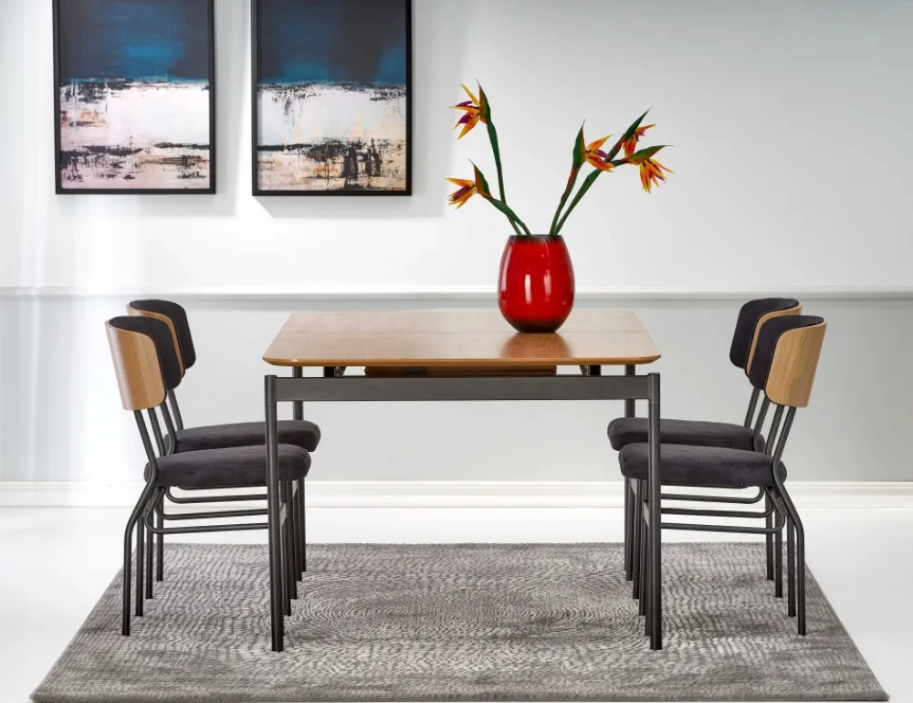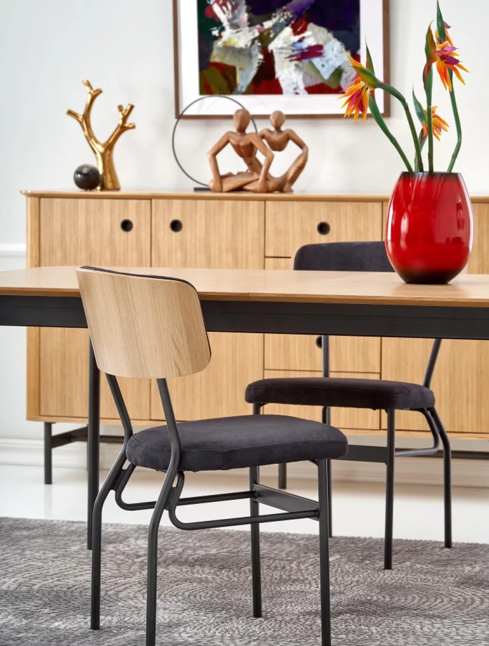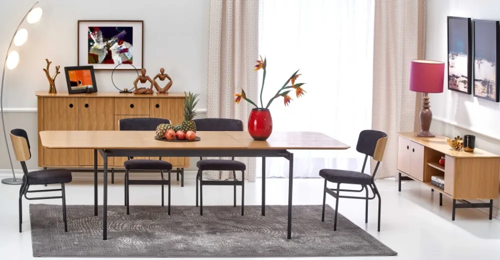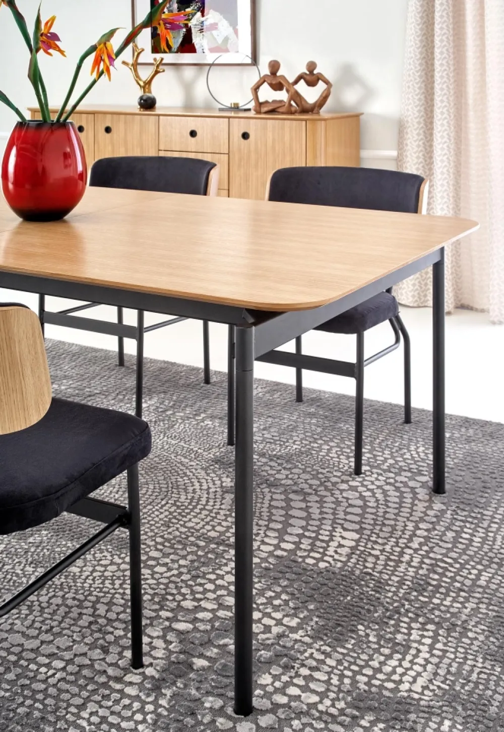 stół, wymiary: 170÷250/100/76 cm, materiał: MDF + okleina naturalna – dębowa / płyta meblowa + okleina naturalna – dębowa / stal malowana proszkowo, kolor: dąb naturalny – czarny