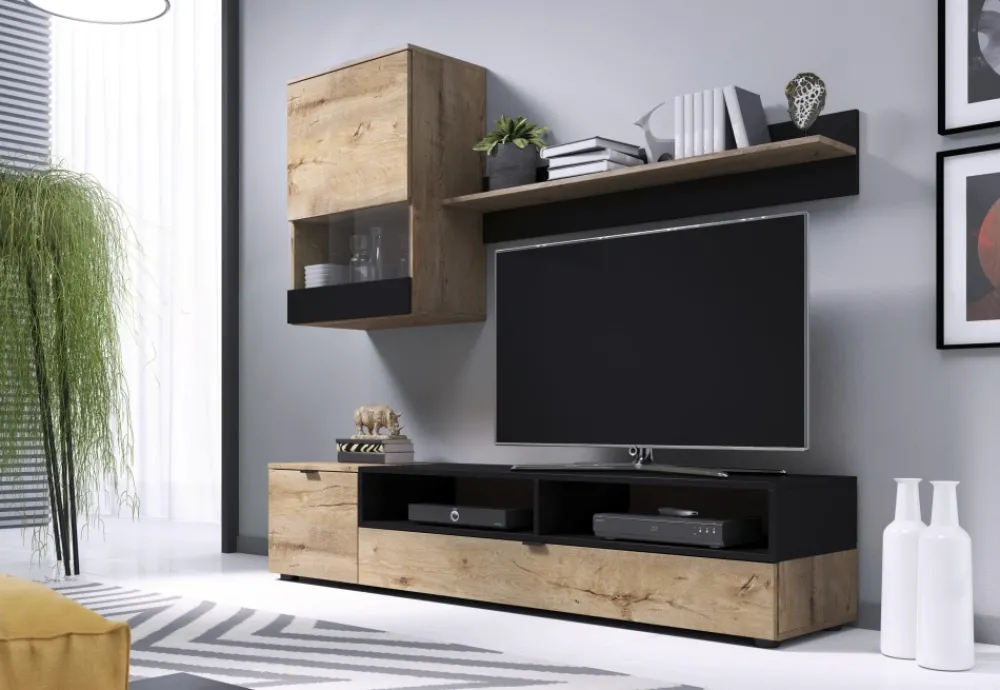 Halmar Szafki Rtv*SNAP meblościanka dąb lefkas/ czarny mat (2p=1szt)1 sztuka