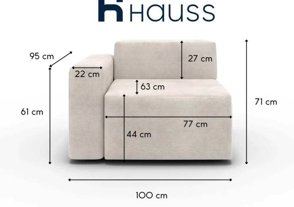Ten modułowy element wypoczynkowy wyróżnia się wyjątkowym komfortem. Siedzisko wypełnione pianką HR i sprężynami falistymi gwarantuje wygodę codziennego relaksu oraz trwałość na lata. Dzięki solidnemu wykonaniu moduł sprawdzi się podczas rodzinnych spotkań, seansów filmowych czy popołudniowego odpoczynku.