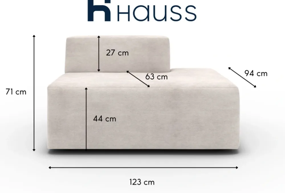 Obłe, nowoczesne kształty modułu prawostronnego nadają wnętrzu elegancji i przytulności. Miękkie siedzisko wypełnione pianką HR oraz sprężynami falistymi zapewnia wygodę podczas codziennego użytkowania. Takie połączenie materiałów gwarantuje trwałość siedziska i komfort przez długie lata, sprawdzając się zarówno przy codziennym relaksie, jak i spotkaniach z rodziną i znajomymi.