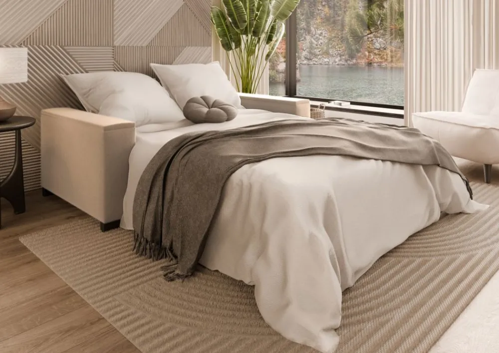Jeśli dysponujesz ograniczoną przestrzenią, sofa Lora będzie idealnym wyborem. Jej szerokość to tylko 160 cm, a mimo to oferuje pełnowymiarową powierzchnię do spania. Dzięki temu model sprawdzi się w kawalerkach, pokojach gościnnych czy biurach pełniących funkcję miejsca noclegowego.