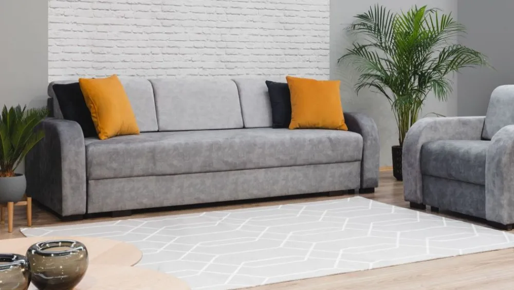 Kanapa Matrix to przykład połączenia funkcjonalności i wygody. Wypełnienie siedziska oraz rozkładanego oparcia oparte na komfortowych sprężynach bonellowych. Kanapa wyposażona w funkcję spania oraz praktyczny pojemnik na pościel wykonany z białej płyty laminowanej. Zastosowany mechanizm ułatwiający rozkładanie pomoże w prosty sposób stworzyć z kanapy wygodne łóżko, niewątpliwym atutem jest duża powierzchnia spania, która pozwala używać mebel do spania codziennego. Mebel bardzo solidnie wykonany, stabilna konstrukcja i dbałość o szczegóły gwarantowana.