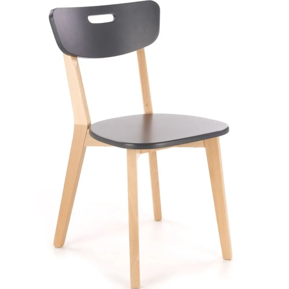 Połączenie drewna bukowego z czarnym kolorem siedziska i oparcia
