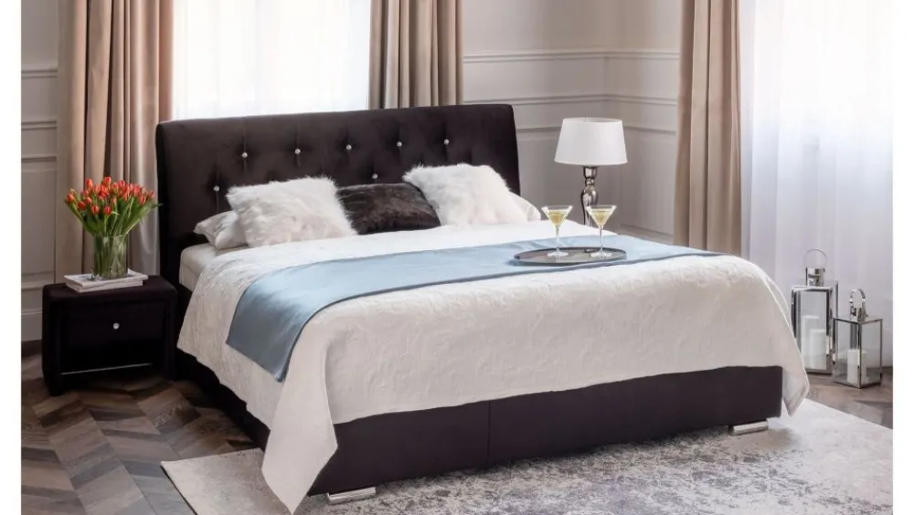 Łóżko Amore posiada wszystko czego trzeba w dzisiejszych czasach -wygodę, styl i możliwość wyboru tkaniny z bogatej gamy materiałów. Nóżki unoszą konstrukcję i nadają odrobinę lekkości. Miękkie wezgłowie możemy wykorzystać jako oparcie w czasie wieczornego czytania. Pikowanie dodaje eleganckiego charakteru i czyni model jeszcze bardziej wyjątkowy. Czas aby odmienić wygląd sypialni, model Amore jest do tego idealną propozycją.
