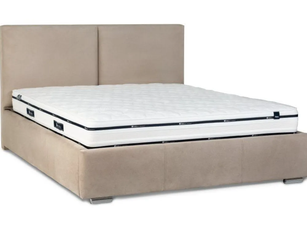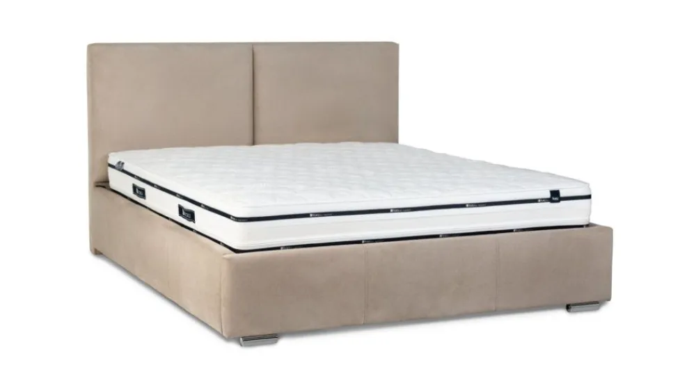 W wersji z pojemnikiem na pościel, doskonale wykorzystujemy wolną powierzchnię pod łóżkiem. Pojemnik ma obszerną powierzchnię i pomieści na prawdę sporo. W cenę wliczony jest unoszony stelaż na siłownikach gazowych. Jego konstrukcja została oparta na metalowej ramie, uzupełnienie stanowią drewniane listwy amortyzujące. Unoszony stelaż umożliwia łatwe otwieranie i szybki dostęp do pojemnika.