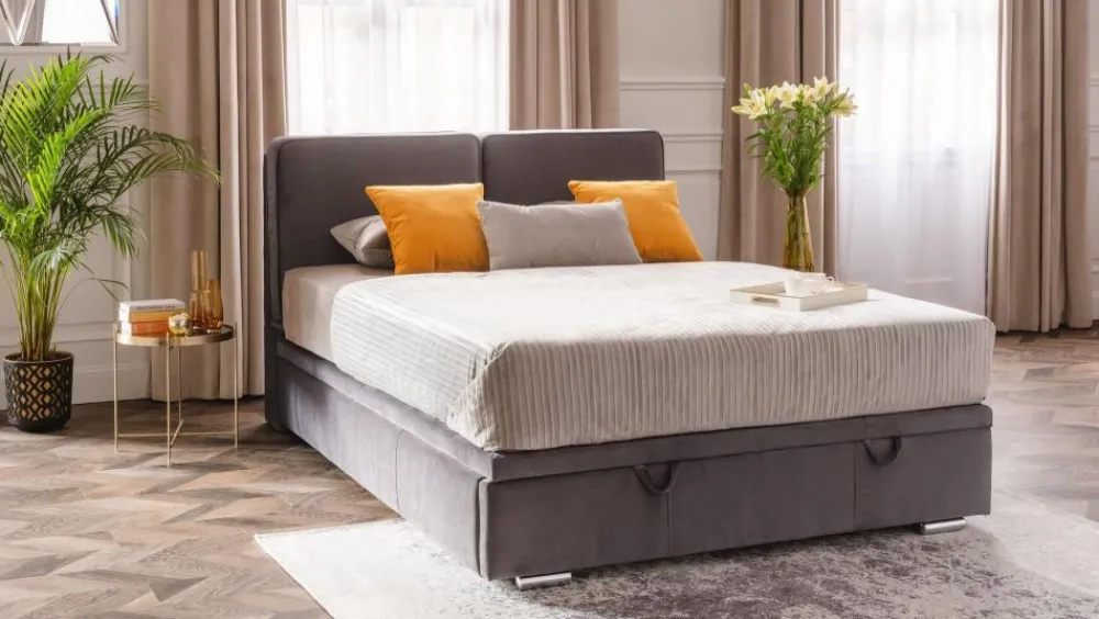 Łóżko Sempre to model dedykowany wielbicielom wieczornego czytania – wezgłowie łóżka składa się z dwóch poduch, które nie dość, że tworzą spójną elegancką całość to na dodatek wpływają na element praktyczny – poduszki umożliwiają wygodne podparcie ciała w pozycji siedzącej. Mimo, że na pierwszy rzut oka, model wygląda bardzo prosto, zastosowanie wymarzonej tkaniny zupełnie odmienia jego oblicze. Prosta linia wcale nie wygląda topornie, gabaryt łóżka jest duży, jednak nie tworzy wrażenia ciężkości. Prosty zabieg w postaci delikatnego uniesienia boczków, wpłynął bardzo korzystnie na ogólny wygląd modelu. Sempre z dużą łatwością wpisze się w aranżacje o różnym stylu, jest przykładem mebla, który zdecydowanie może stać się główną ozdobą sypialni.