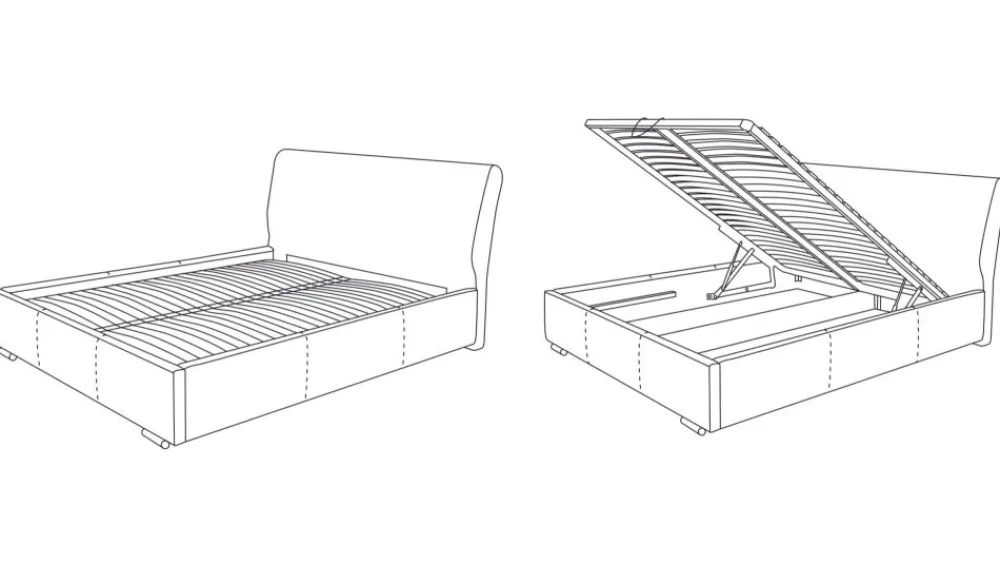 W wersji z pojemnikiem na pościel, doskonale wykorzystujemy wolną powierzchnię pod łóżkiem. Pojemnik ma obszerną powierzchnię i pomieści na prawdę sporo. W cenę wliczony jest unoszony stelaż na siłownikach gazowych. Oferta nie obejmuje materaca. Jego konstrukcja została oparta na metalowej ramie, uzupełnienie stanowią drewniane listwy amortyzujące. Unoszony stelaż umożliwia łatwe otwieranie i szybki dostęp do pojemnika.