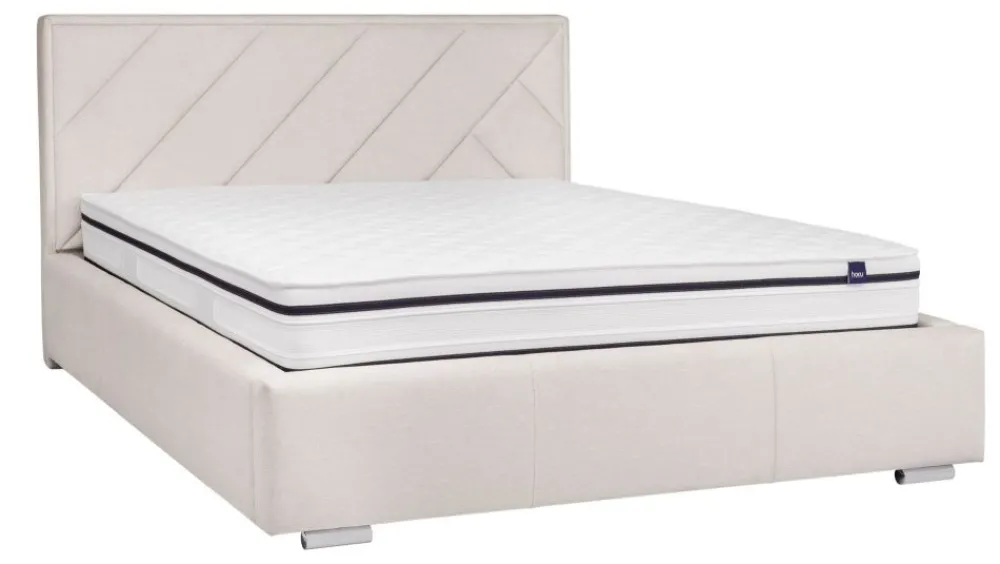 Prezentowany wariant posiada pojemnik na pościel. W cenę wliczony jest stelaż unoszony za pomocą siłowników gazowych. Rama stelaża jest metalowa i połączona i drewnianymi listwami amortyzującymi. Pojemnik na pościel wyśmienicie wykorzystuje wolną przestrzeń pod stelażem i przez swoją wielkość wpływa pozytywnie na funkcjonalność produktu. Całość pojemnika wykończona jest estetyczną i łatwą w utrzymaniu czystości białą płytą laminowaną. Cena nie obejmuje materaca.