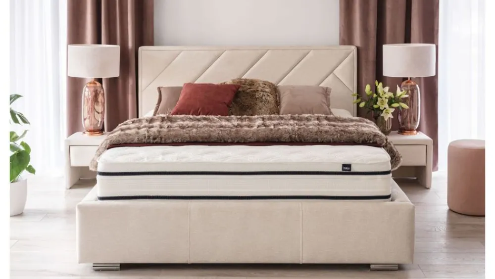 Łóżko Nastri jest przykładem modelu, który jest w stanie uniwersalnie wpisać się we wnętrza o różnych stylach. Elementem przykuwającym uwagę jest zdecydowanie wezgłowie łóżka, które zostało wykończone ciekawym układem kostek tapicerowanych, które układają się w ciekawy wzór. Właśnie ten wzór jest cechą charakterystyczną tego modelu. Zastosowany układ łączy w sobie minimalizm i elegancję. Próżno szukać tutaj wyszukanych elementów ozdobnych, w przypadku modelu Nastri są one zupełnie zbędne. Prostą zmianę wyglądu uzyskujemy dzięki możliwości wyboru tkaniny z bogatego wzornika. Zmiana tkaniny w przypadku mebli tapicerowanych powoduje ogromy wpływ na końcowy wygląd mebla. Dzięki temu możemy z powodzeniem dopasować wygląd łóżka do tworzonej aranżacji oraz wziąć pod uwagę własne preferencje odnośnie rodzaju tkaniny i jej właściwości. Istnieje również możliwość wyboru nóżek. Pora aby zupełnie odmienić oblicze swojej sypialni – ten model zdecydowanie to umożliwi. Sypialnia z łóżkiem Nastri producenta Hauss już nigdy nie będzie zwykłym miejscem do spania. Jeżeli do tej pory wygląd łóżka nie miał znaczenia, ten model zmieni to podejście. Prosta linia wcale nie wygląda topornie, gabaryt łóżka jest duży, jednak nie tworzy wrażenia ciężkości. Pozornie prosty zabieg w postaci delikatnego uniesienia boczków, wpłynął bardzo korzystnie na ogólny wygląd modelu, nadając łóżku odrobinę lekkości.