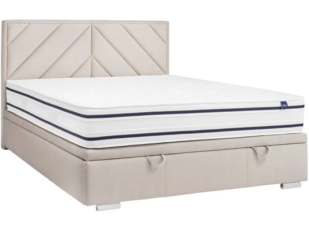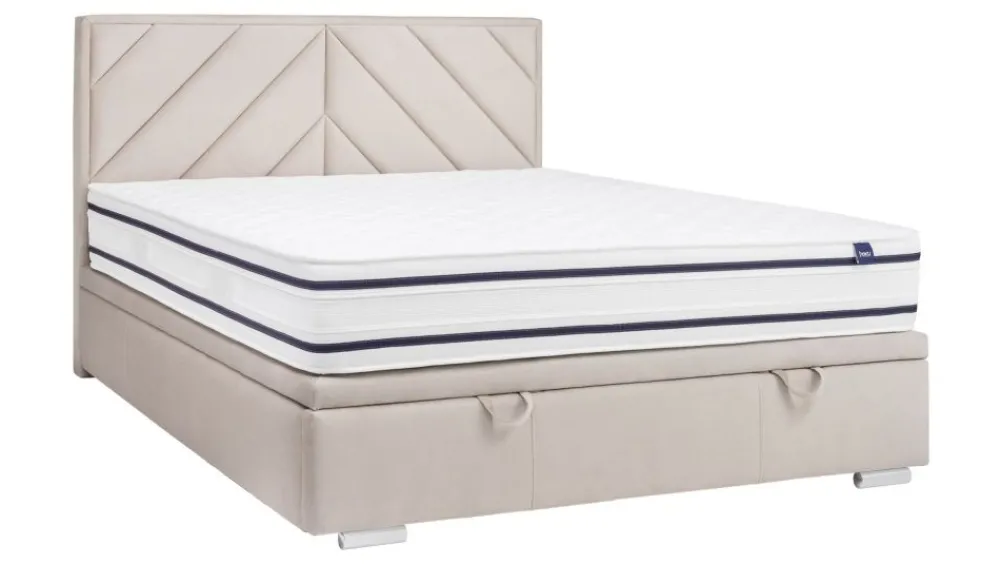 Model w wersji Slim – dedykowany mniejszym pomieszczeniom. Konstrukcja pod materac jest jedynie kilka centymetrów szersza od materaca, dzięki czemu oszczędzamy na prawdę sporo miejsca. Podobnie sytuacja ma się z wezgłowiem, które nie wystaje poza obręb bocznych krawędzi. Stelaż zintegrowany z całym łóżkiem (część zestawu) – konstrukcja drewniana, klejona + dodatkowo wzmocniona wkrętami. Całość stelaża została otapicerowana, dzięki czemu tworzy z łóżkiem spójną całość. Za unoszenie konstrukcji odpowiadają siłowniki gazowe, które umożliwiają proste otwieranie i zamykanie. Duży pojemnik na pościel wykończony estetyczną płytą laminowaną w kolorze białym. Dwie wygodne rączki do unoszenia stelażu poprawiają funkcjonalność. Cena nie obejmuje materaca.