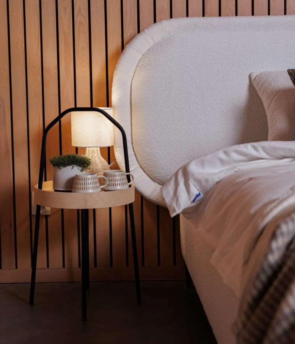 Luna to łóżko na wysokich nóżkach, co nadaje konstrukcji lekkości i zwiększa funkcjonalność – ułatwia dostęp do podłogi podczas sprzątania, także robotem. Do wyboru masz trzy modne kolory nóżek: czerń (mat), miedź oraz chrom, które pozwalają dopasować mebel do charakteru wnętrza. Wysokie nóżki podkreślają nowoczesny charakter bryły i dodają jej stylu. Ten detal sprawia, że łóżko świetnie prezentuje się zarówno w jasnych, jak i ciemnych aranżacjach. Stabilne, metalowe nóżki są trwałe, odporne na zarysowania i stanowią eleganckie wykończenie całości.