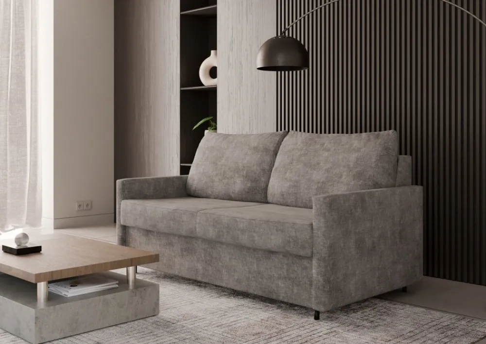 Sofa Carmen to idealna propozycja dla osób, które szukają połączenia stylu i wygody w codziennym użytkowaniu. Dzięki wysokiej jakości wypełnieniu i ergonomicznemu oparciu zapewnia komfortowy wypoczynek w ciągu dnia. Wieczorem z łatwością przekształca się w pełnowymiarowe łóżko, co sprawia, że jest to sofa z funkcją spania idealna do mniejszych przestrzeni. Sofa z materacem Carmen dostępna jest w trzech szerokościach powierzchni spania: 120×196 cm, 140×196 cm i 160×196 cm, co pozwala dopasować ją do indywidualnych potrzeb. Do wyboru są różne tkaniny, co czyni ją łatwą do personalizacji. Jej ponadczasowy design sprawia, że doskonale komponuje się zarówno w nowoczesnych, jak i klasycznych wnętrzach.