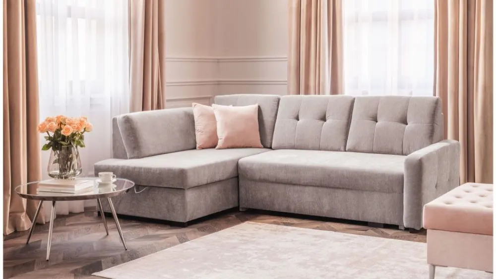 Narożnik Amigo to przykład połączenia funkcjonalności i wygody. Narożnik wyposażony w funkcję spania oraz praktyczny pojemnik na pościel wykonany z białej płyty laminowanej. Funkcja spania typu puma. Model wyróżnia się podwójnym sprężynowaniem na całej powierzchni (również na części rozkładanej). Zastosowany mechanizm ułatwiający rozkładanie pomoże w prosty sposób stworzyć z kanapy wygodne łóżko. Kolejnym atutem jest stosunkowo duża powierzchnia spania, która umożliwi stosowanie narożnika również do spania codziennego. Poduszki oparciowe wykonane z formatek piankowych, zagwarantują wygodne oparcie w czasie seansów filmowych lub spotkań z rodziną lub znajomymi.
