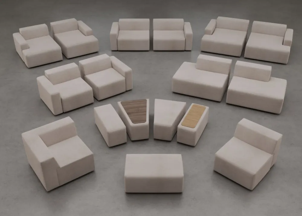 Zaprojektowany przez markę Hauss, system modułowy Enjoy daje pełną swobodę tworzenia kompozycji dopasowanych do przestrzeni i stylu życia. Moduły łączą się za pomocą uchwytów typu krokodylki, gwarantując stabilność i estetyczny wygląd bez widocznych szczelin. Każdy element można dowolnie przestawiać – w kilka chwil stworzysz narożnik, sofę lub zestaw rodzinny dopasowany do okazji.