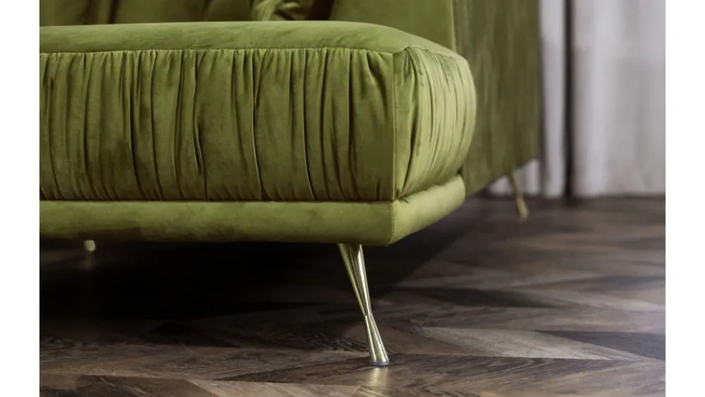 Narożnik Velutto to nowoczesna wersja glamour. Mebel z pewnością odnajdzie się również w stylu art deco. Dzięki wysokim nóżkom wygląda lekko i elegancko, a efektu całości dodają marszczenia na froncie mebla oraz duża ilość miękkich poduszek. Dzięki tym wszystkim cechom mebel nie tylko dobrze wygląda, ale jest też niezwykle komfortowy.